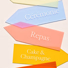 Créez vos flèches sur-mesure chez les Mignonneries ! Découvrez nos différents bois et plexi et personnalisez votre visuel avec nos nombreuses polices aux choix. La liste des matériaux et des polices n'étant pas exhaustive, n'hésitez pas à nous contacter pour discuter de la faisabilité de votre projet.
