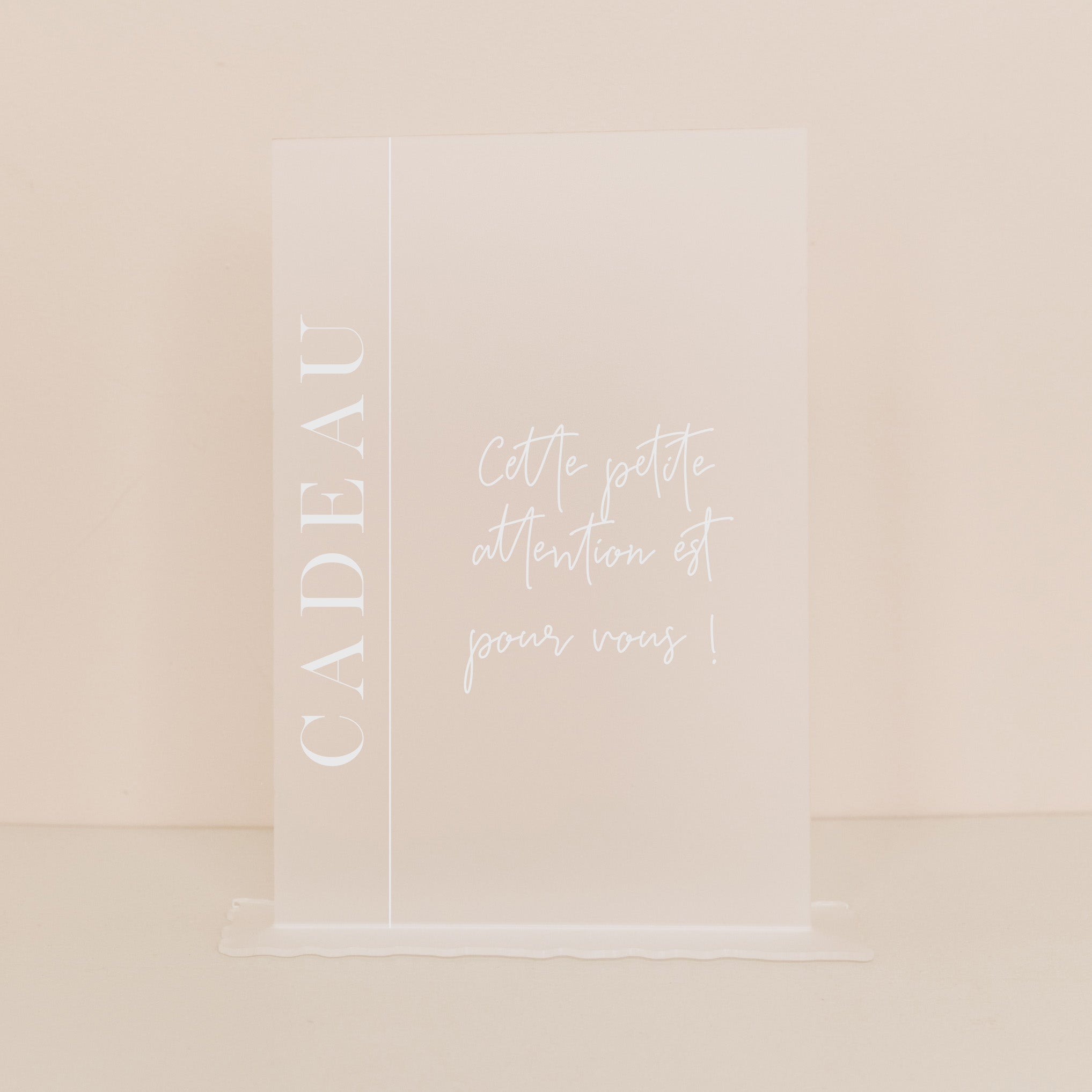 Découvrez notre panneau "cadeaux d'invités" en plexi givré blanc Frost. Imaginé par Les Mignonneries, il vous permettra de décorer le coin cadeaux de votre mariage.