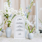 Découvrez les menus sur plexi mat Gaspard. Ils sont imprimés et découpés dans notre atelier et à personnaliser avec votre texte.