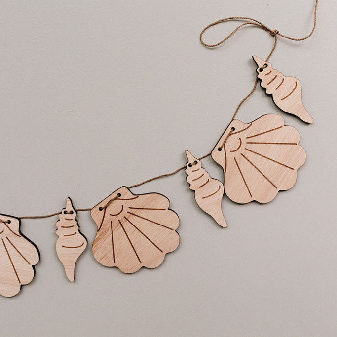 Découvrez ce décor Océan, un ensemble de 12 coquillages imaginé par les Mignonneries à assembler sur la petite cordelette qui vous sera fournie. En bois, ils sont coupés et gravés dans notre atelier.