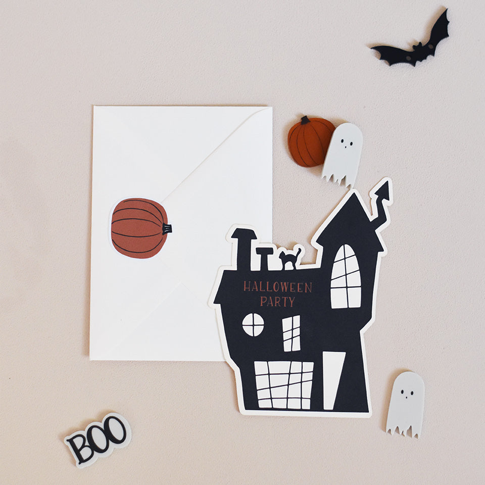 Découvrez ces jolies invitations Maison hantée vendues par lot de 6.