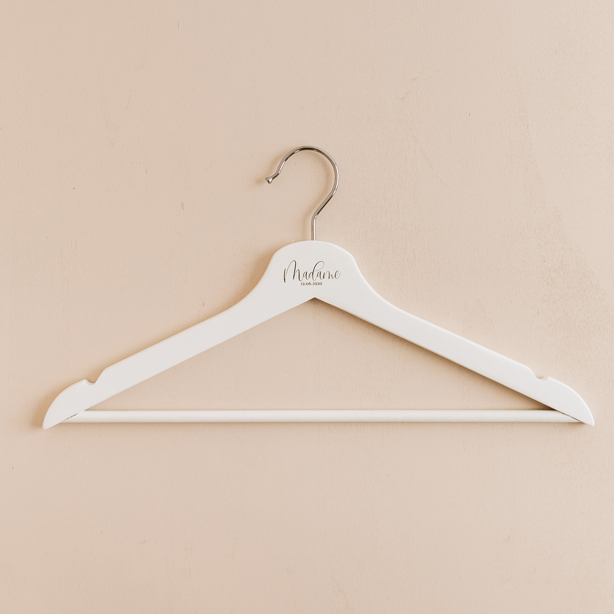 Les cintres personnalisés sont un joli cadeau à s'offrir pour la préparation de votre mariage ou pour un autre événement. Imaginés par les Mignonneries, et à personnaliser avec vos prénoms, votre date de mariage ou les termes de votre choix, ils sont gravés dans notre atelier avec amour.