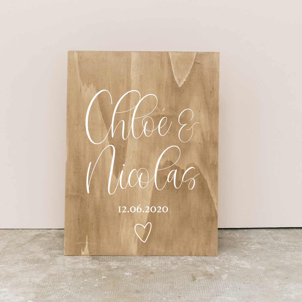 Découvrez notre panneau d'accueil en bois foncé Kraft. Imaginé par les Mignonneries, et à personnaliser avec vos prénoms et la date de votre mariage, il est entièrement créé dans notre atelier.