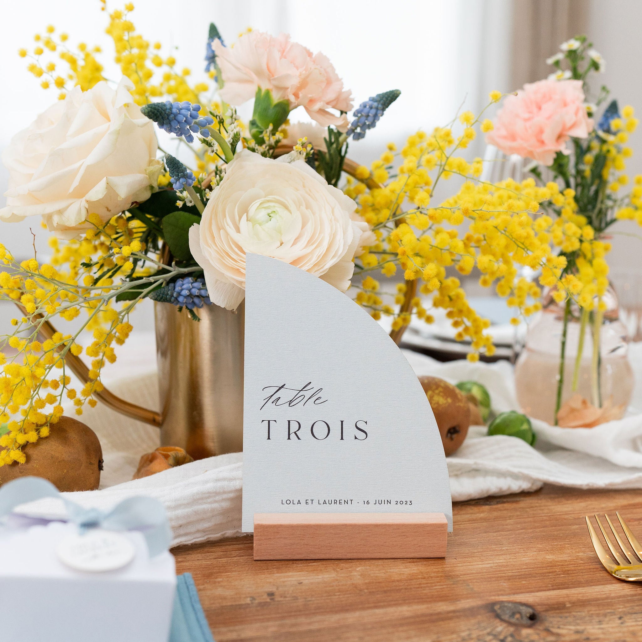 Découvrez les noms de table personnalisés « aileron » de la collection Lola. Cette collection vous allez l'adorer pour son côté moderne.