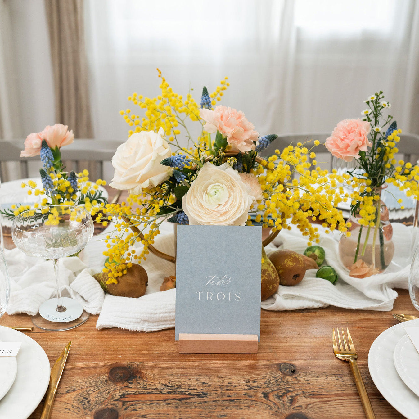 Les noms de table permettront à vos invités de trouver plus rapidement leur table. Un joli accessoire qui habillera avec élégance la décoration de votre table de mariage.