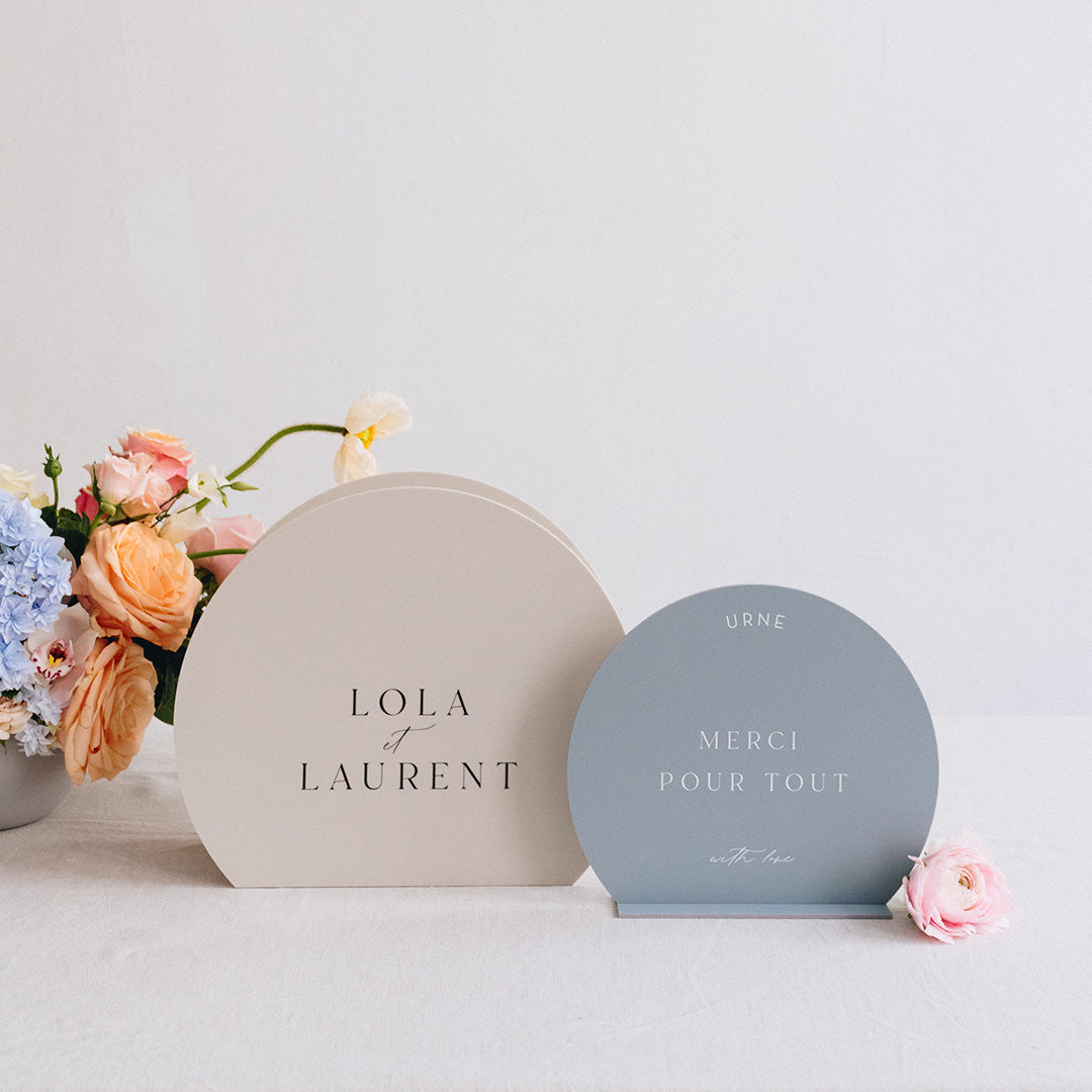 Découvrez notre panneau «urne» en plexi mat coloré Lola. Imaginé par Les Mignonneries, il est découpé et imprimé dans notre atelier.