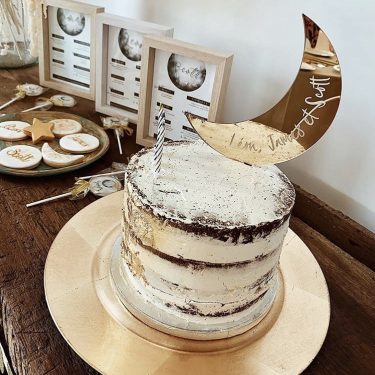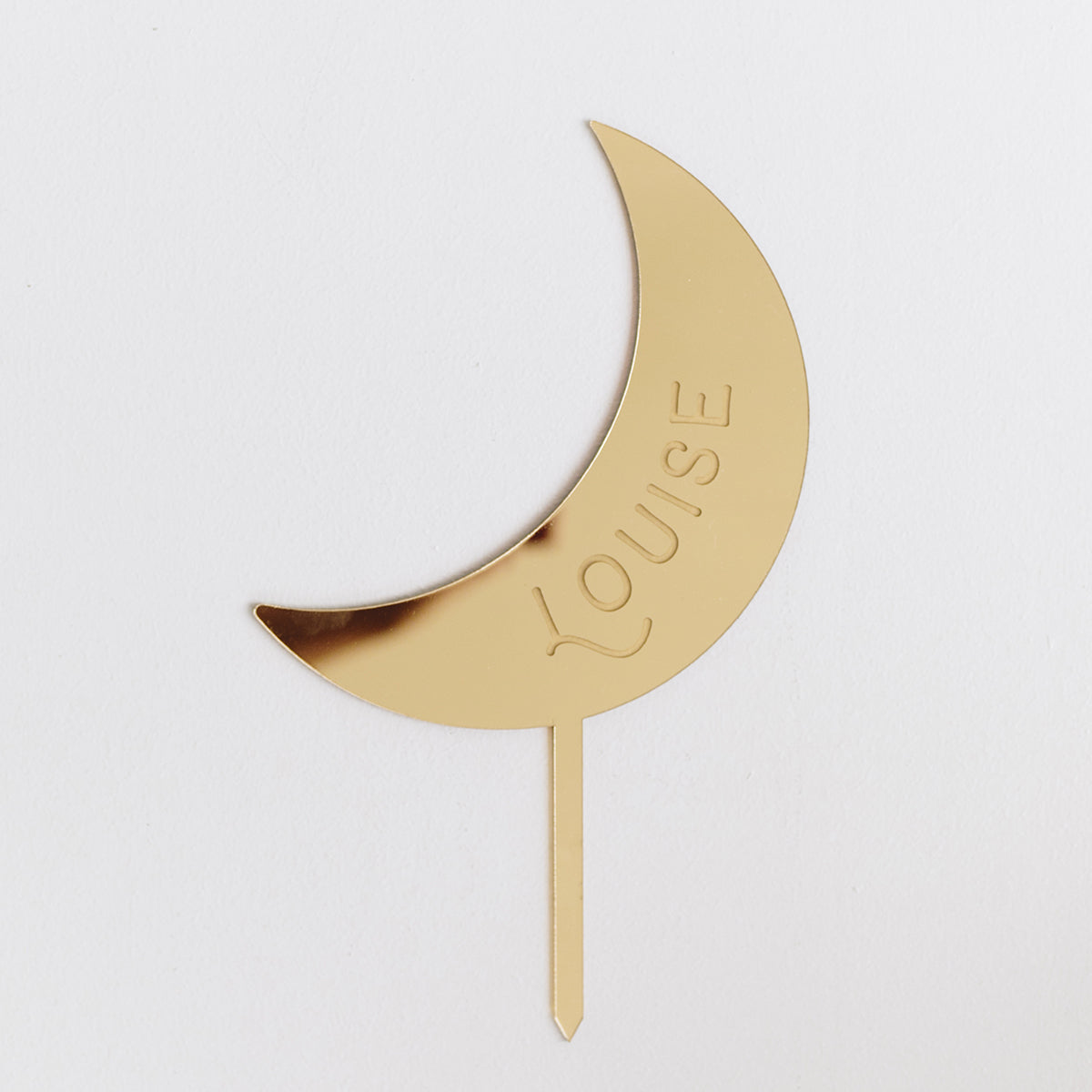 Découvrez notre cake topper Lune. Imaginé par Les Mignonneries et à personnaliser avec le prénom de votre enfant, il saura s'adapter à l'esprit de votre évènement, grâce un large choix de couleurs et matières.