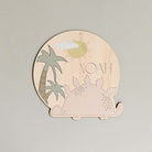 Découvrez ce panneau Dino. Avec une illustration imaginée par Les Mignonneries, il est à personnaliser avec le texte de votre choix. En bois, il est coupé et imprimé dans notre atelier.