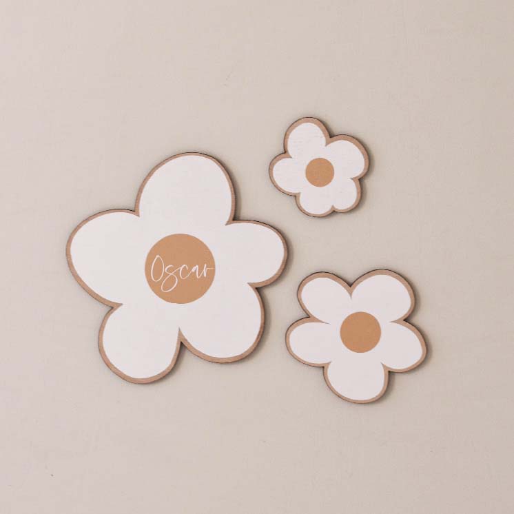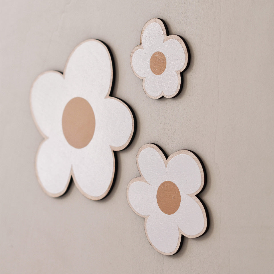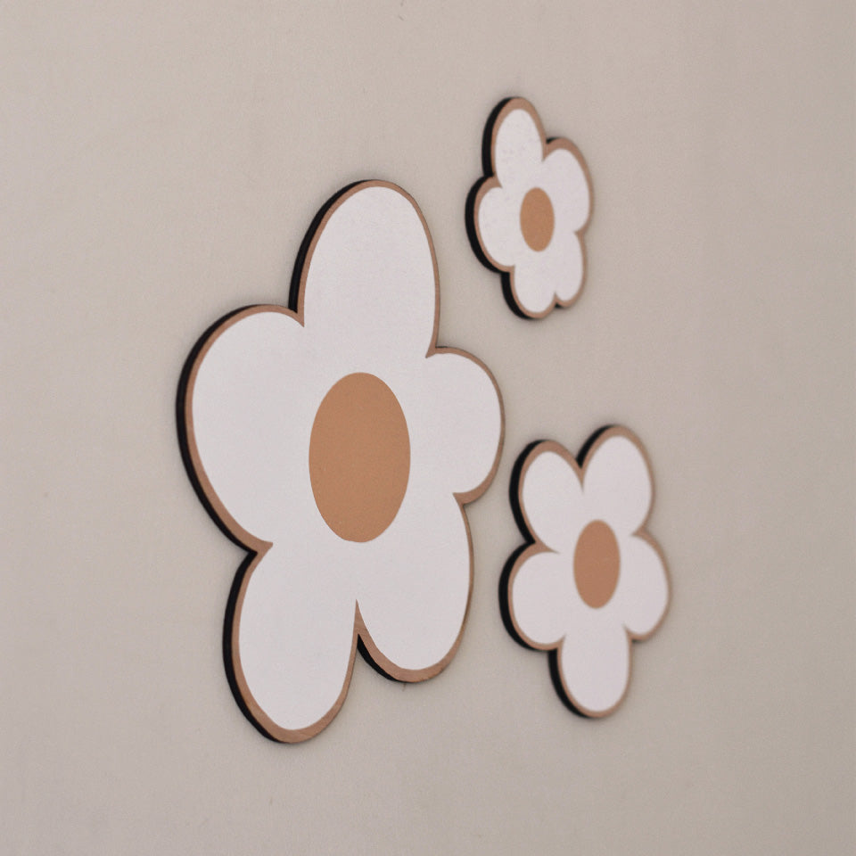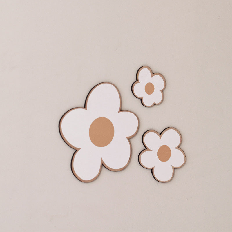 Découvrez ce décor Fleurs. Un ensemble de trois illustrations imaginées par Les Mignonneries, à fixer au mur par 3 ou plus, grâce à l'adhésif dont il est recouvert au dos. En bois imprimé, elles sont coupées dans notre atelier.