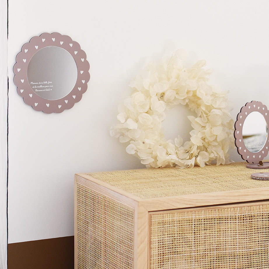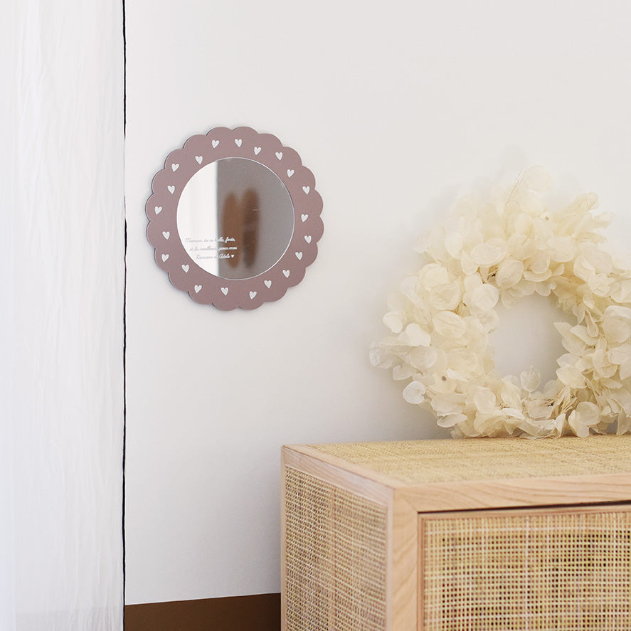 Découvrez le miroir imaginé et créé par les Mignonneries pour la fête des mamans. Un miroir à accrocher au mur de la chambre, de l'entrée ou du salon, avec un petit message personnalisé de vos enfants. Un cadeau unique à conserver pour toujours