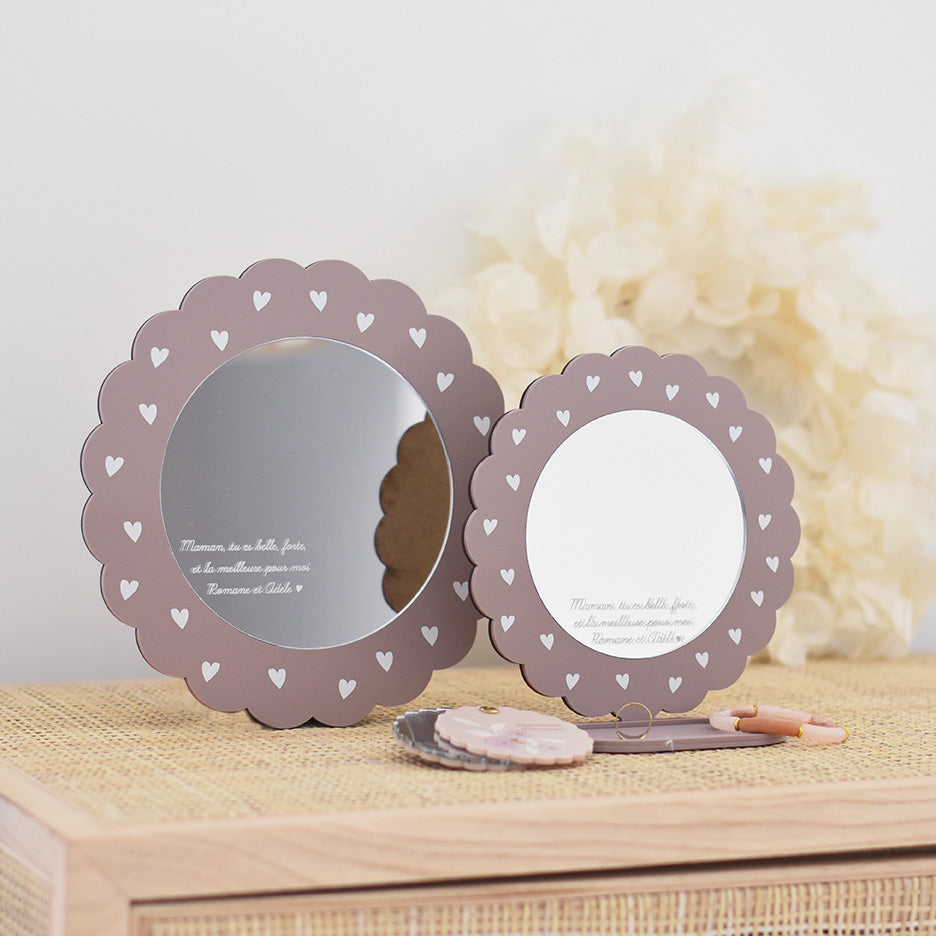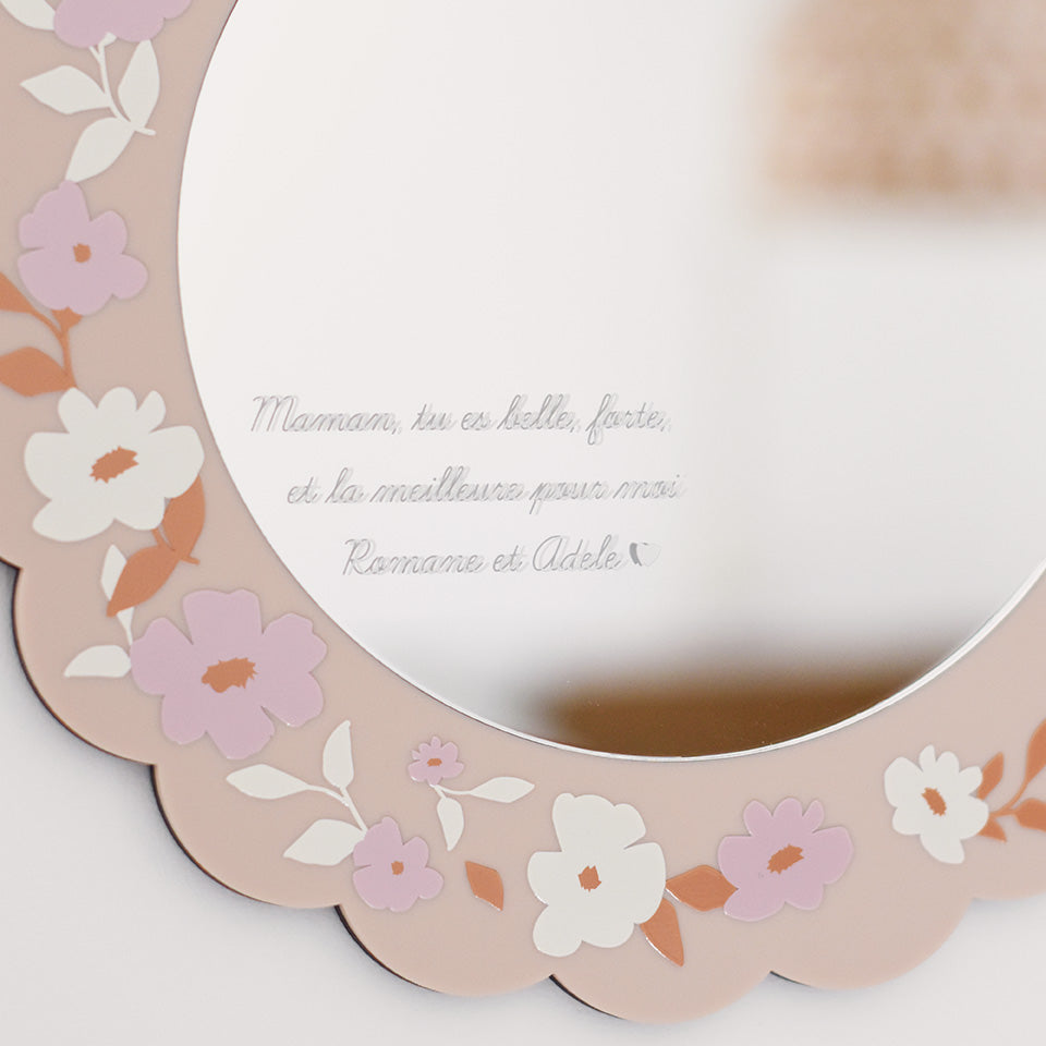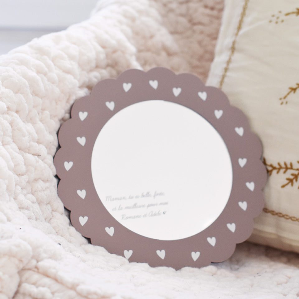 Découvrez le miroir imaginé et créé par les Mignonneries pour la fête des mamans. Un miroir à accrocher au mur de la chambre, de l'entrée ou du salon, avec un petit message personnalisé de vos enfants. Un cadeau unique à conserver pour toujours