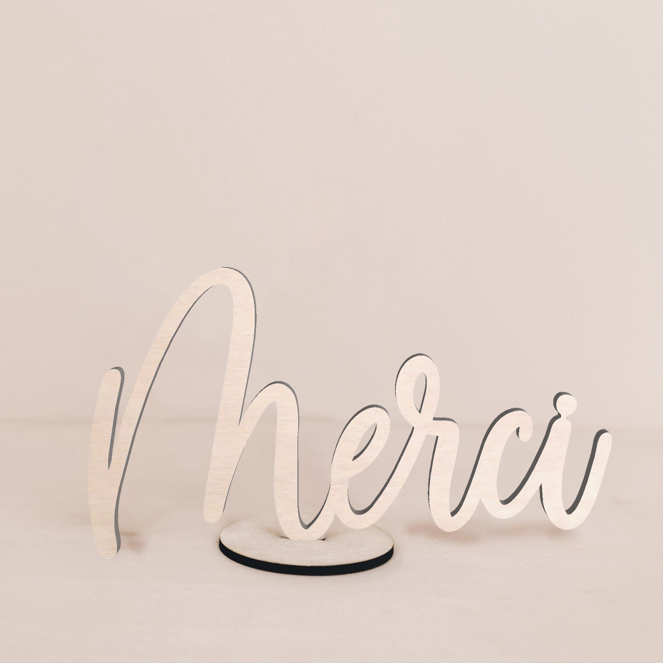 Découvrez notre signalétique "Merci" en bois ou plexi. Imaginée par Les Mignonneries, il est à poser près de votre urne le jour de votre mariage.