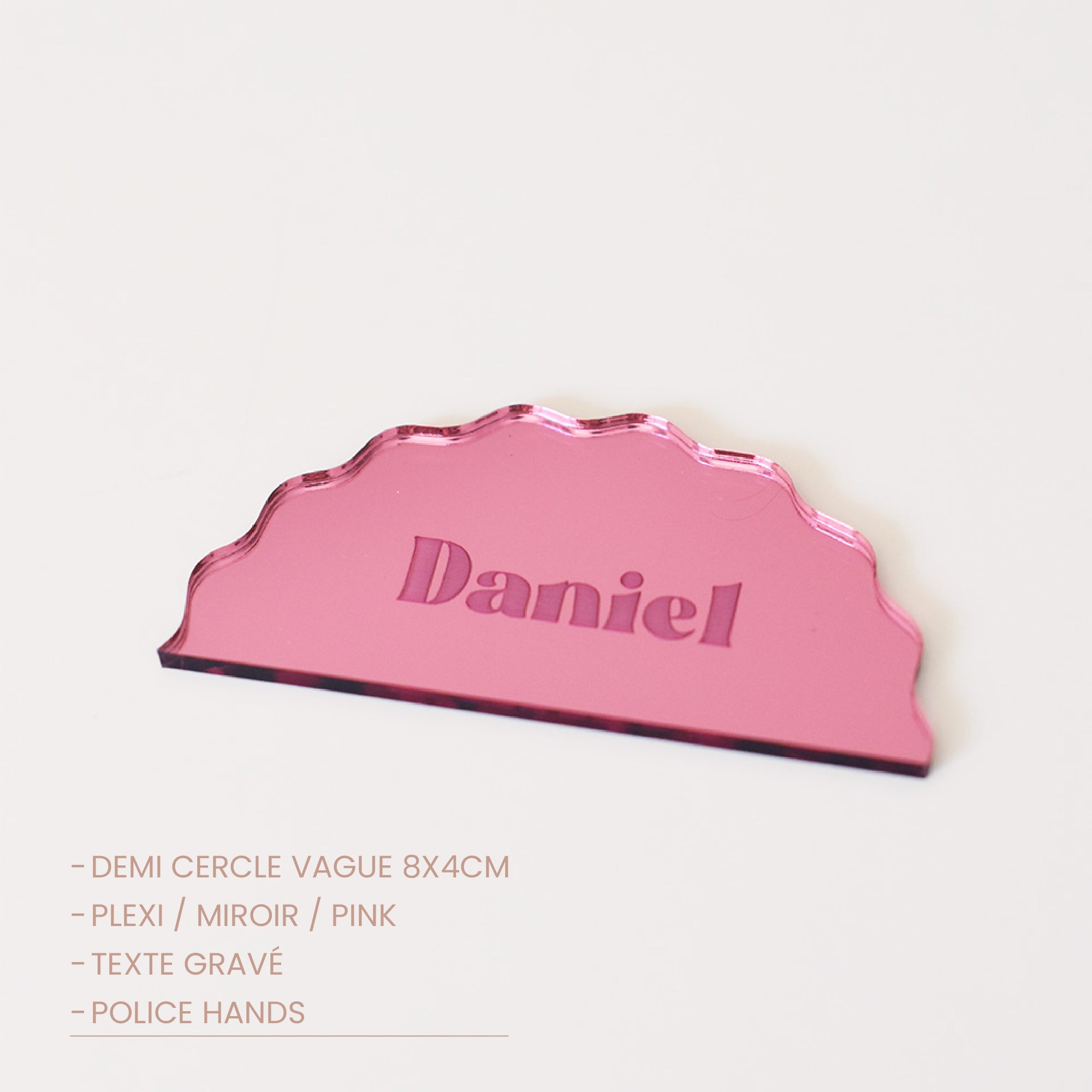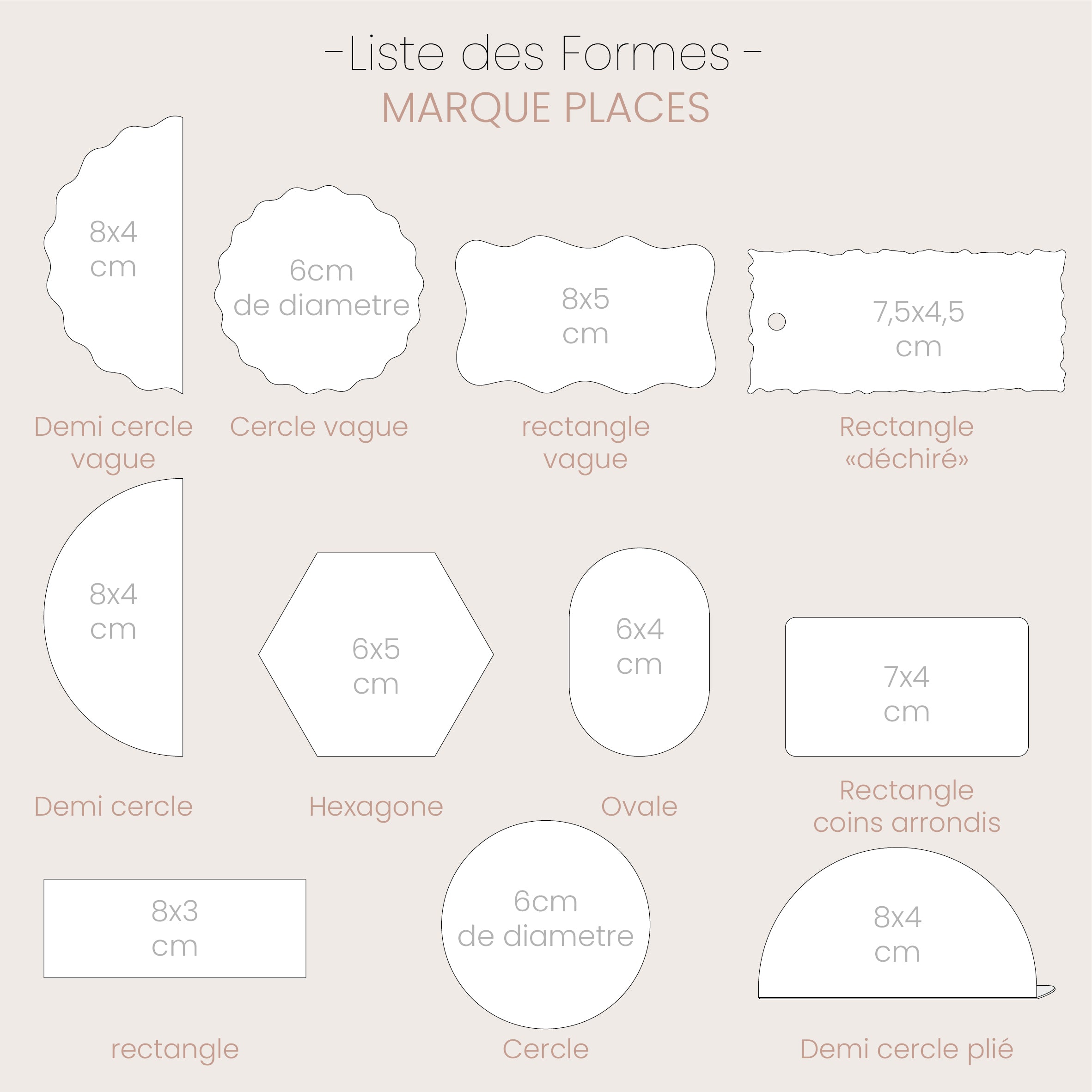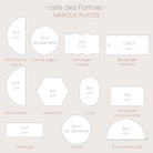 Créez vos marque-places sur-mesure chez les Mignonneries ! Découvrez nos différents matériaux et personnalisez votre visuel avec nos nombreuses polices au choix. La liste des matériaux et des polices n'étant pas exhaustive, n'hésitez pas à nous contacter pour discuter de la faisabilité de votre projet.