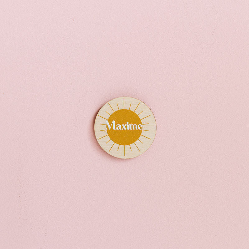 Découvrez les marque-places imprimés soleil. De jolis marque-places imaginés par Les Mignonneries à personnaliser avec les prénoms de vos petits invités. Fabriqués à partir de peuplier, ils sont coupés et imprimés dans notre atelier.