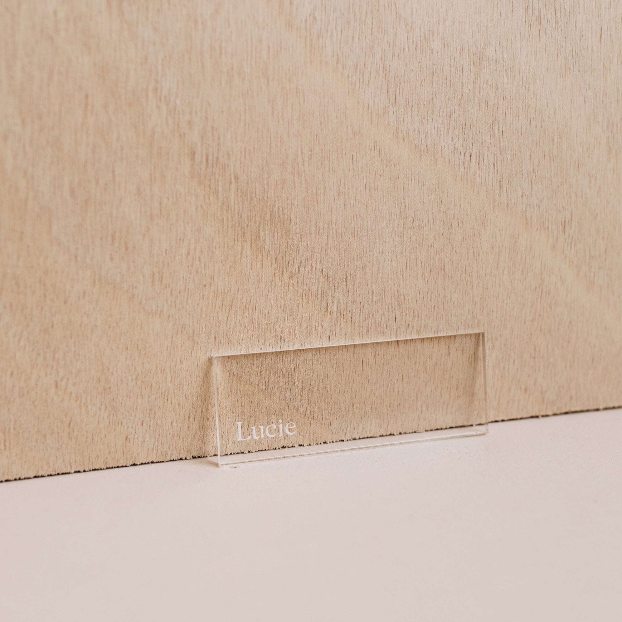 Fabriqués à partir d'okoumé ou de plexiglass transparent, ils sont coupés et gravés dans notre atelier.