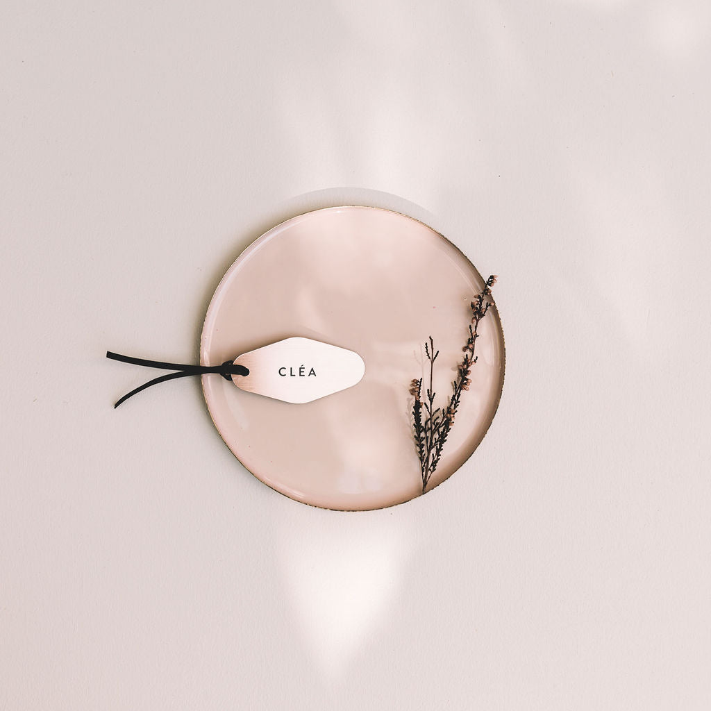 Ces marque-places font partie de notre collection Rebelles. Il sont fabriqués en acrylique bi-couche noir, blanc ou cuivré et sont coupés et gravés dans notre atelier.