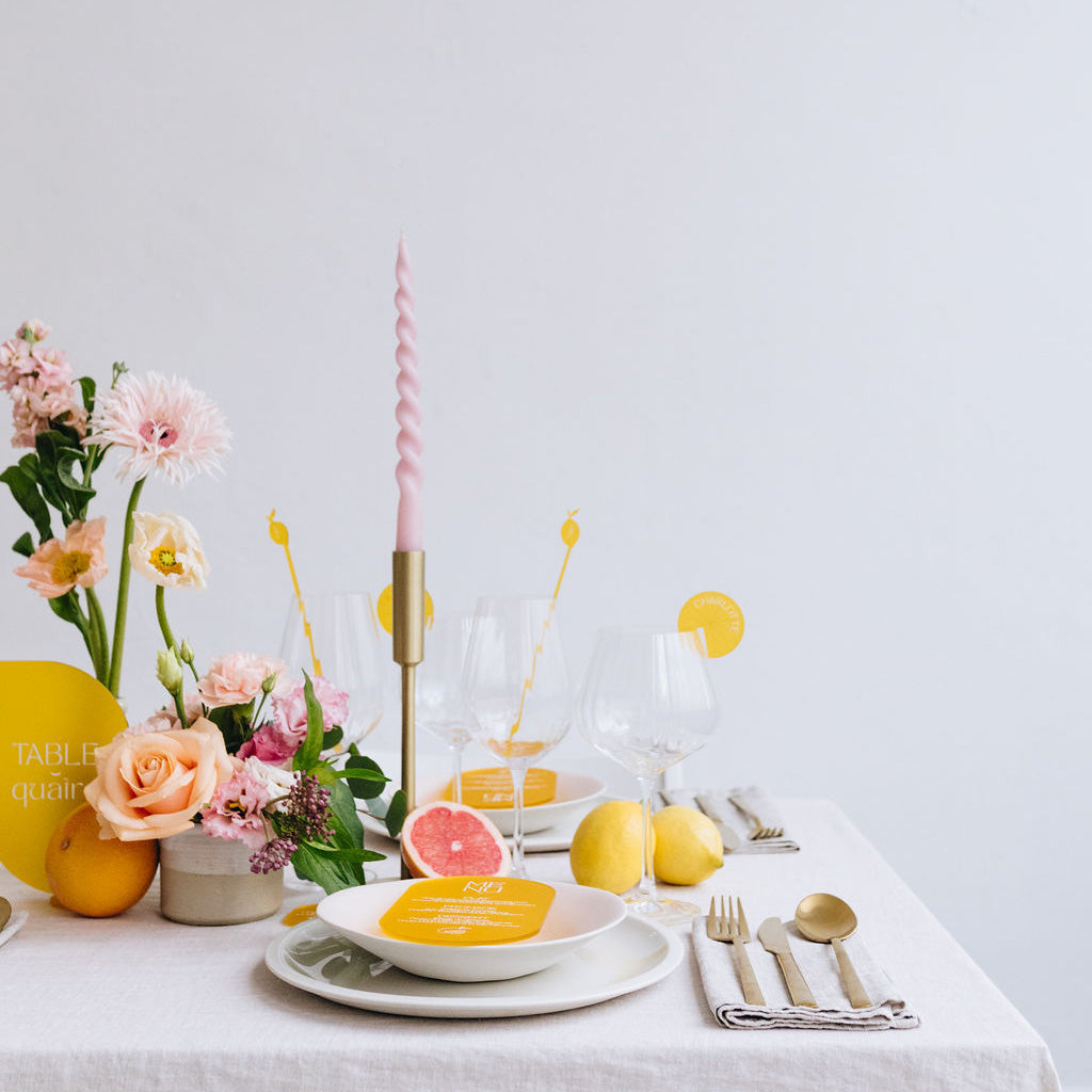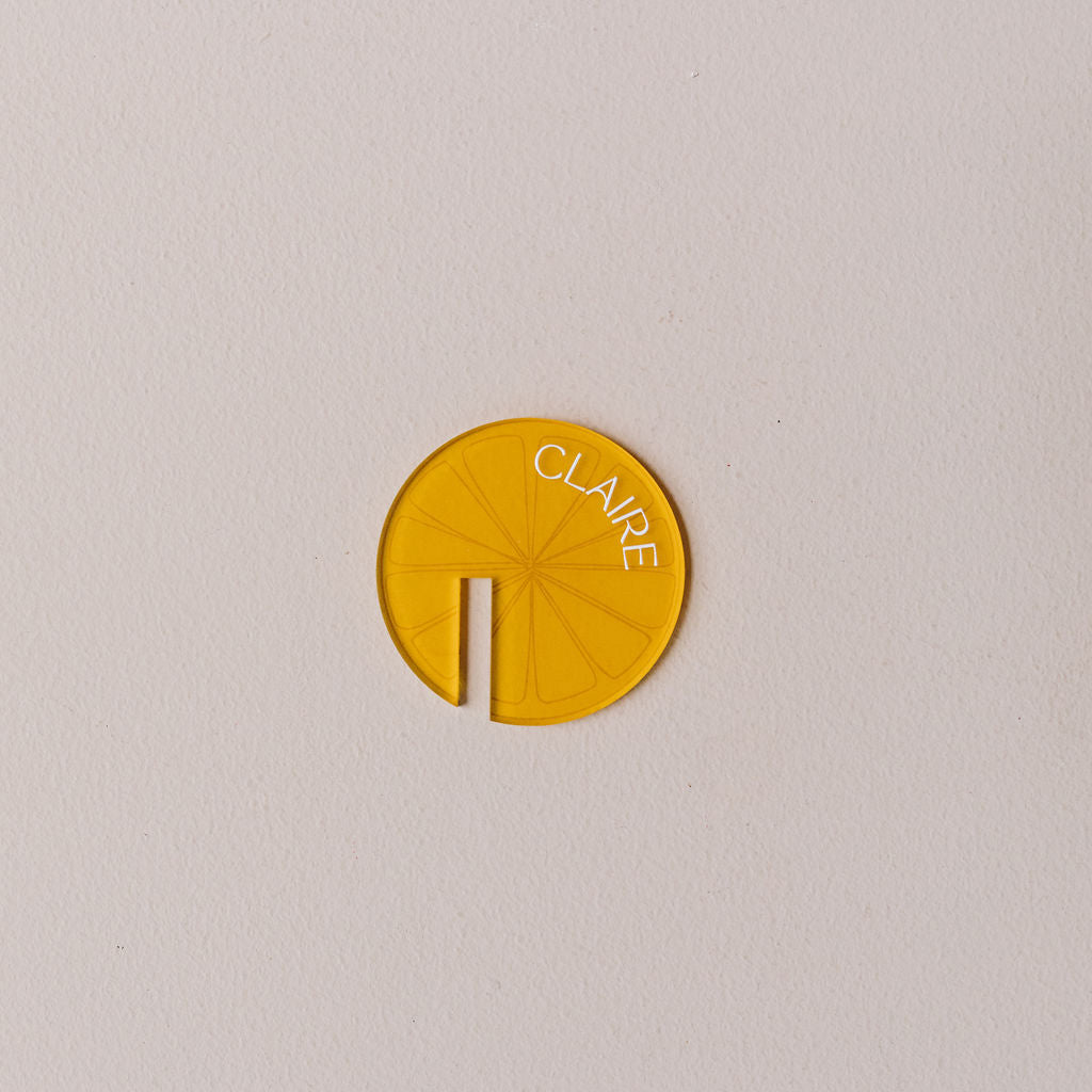 Ces marque-verres font partie de notre collection Dolce. Ils sont fabriqués en plexi givré saffran yellow et sont coupés et imprimés dans notre atelier. Ils seront parfaits pour apporter une coloré à votre décoration.