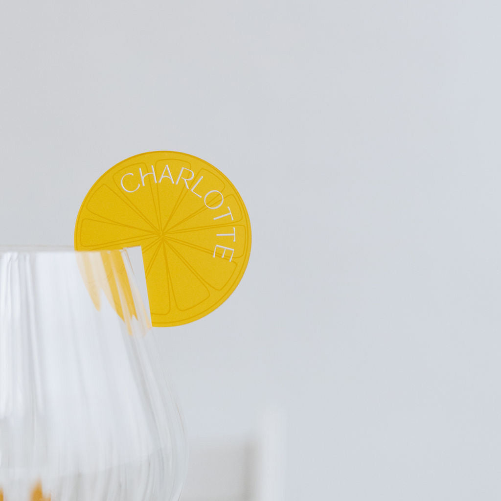 Découvrez les marque-verres Dolce en plexi givré colorés. Imaginés par les Mignonneries, ils sont à personnaliser avec les prénoms de vos invités. Une façon originale et pratique pour décorer la table le jour J!