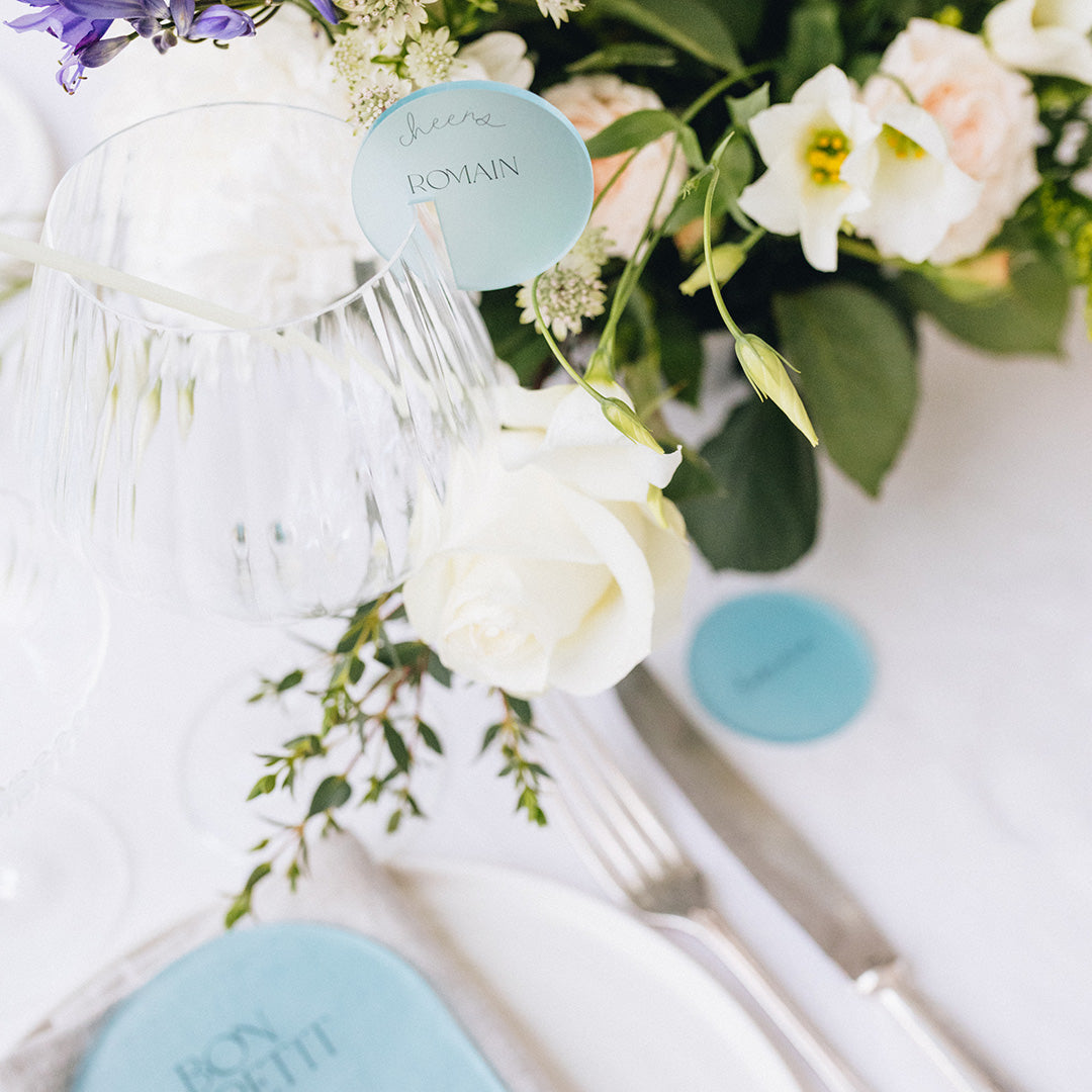 Ces marque-places font partie de notre collection Pastel, une collection tendance et décalé en plexi givré coloré. Ils sont coupés et imprimés dans notre atelier. Vous pourrez choisir la couleur dans les options ci-dessous.