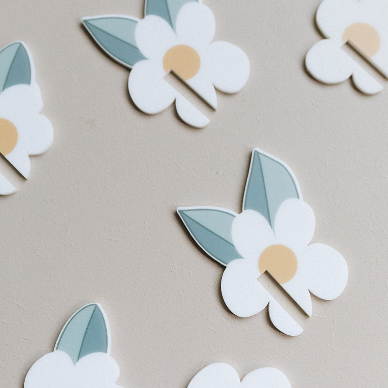 Découvrez les marque-verres en plexi imprimés fleurs. Imaginés par Les Mignonneries, ils sont fabriqués à partir de plexi blanc mat. Ils sont coupés et imprimés d'un joli motif marguerite dans notre atelier. Les marque-verres fleurs sont disponibles en lot de 10 répartis comme ceci : 3 une feuille, 3 deux feuilles et 4 sans feuille.