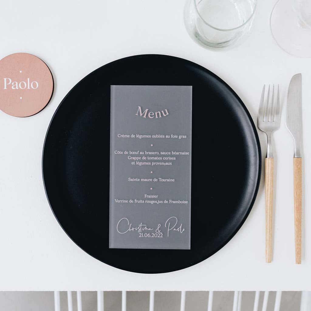 Découvrez les menus sur plexi givré Best Day. De jolis menus imprimés et imaginés par Les Mignonneries à personnaliser avec votre texte.