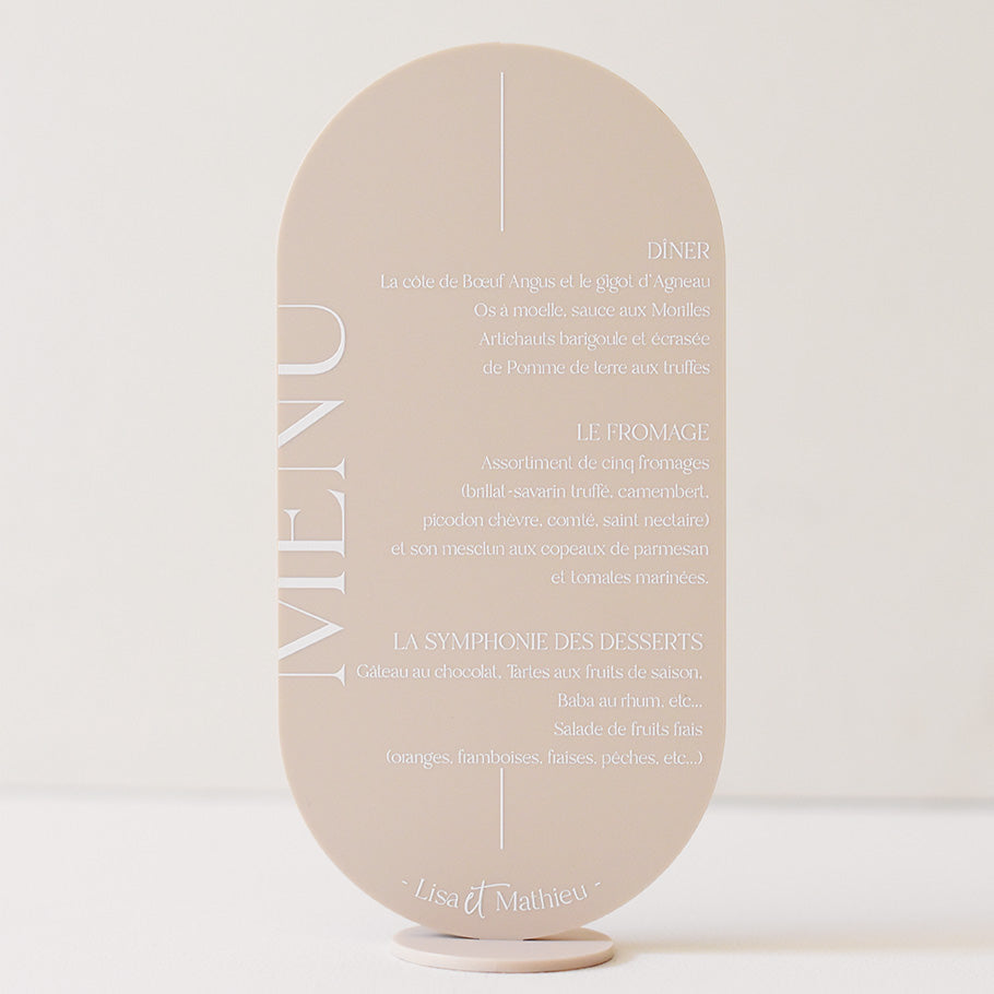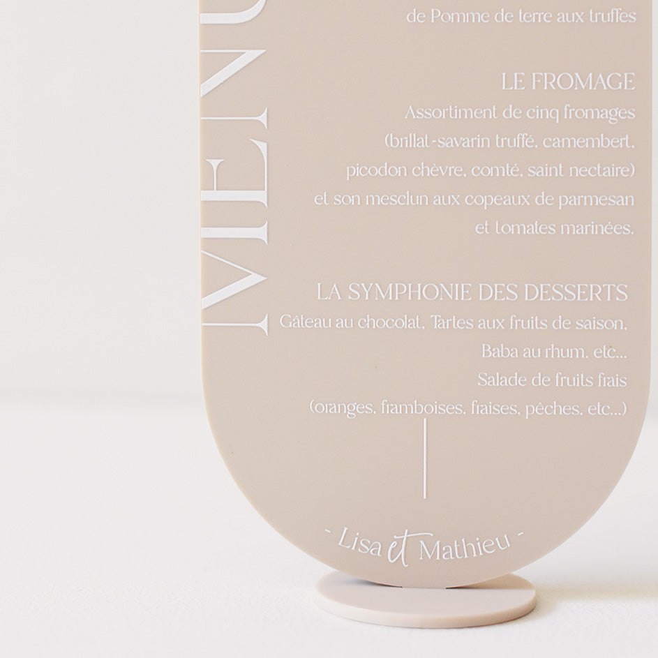 Ces menus font partie de notre collection Folk. Cette collection vous allez l'adorer pour son originalité et sa touche moderne qui allie plexi fumé et bois naturel.