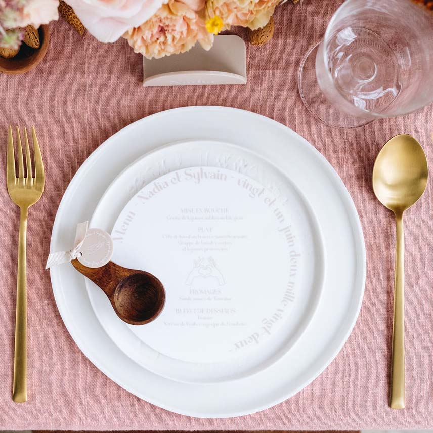 La collection Hands aux formes arrondies et aux touches de couleurs nude a été imaginée pour décorer votre événement avec élégance. Mais également, pour le clin d'œil à votre amour pour les détails et au côté raffiné. Découvrez ce que nous avons imaginé pour accorder avec vos menus de cette collection.