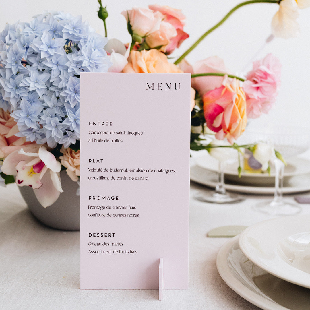 Ces menus font partie de notre collection Lola. Cette collection vous allez l'adorer pour  sa touche sobre et moderne.