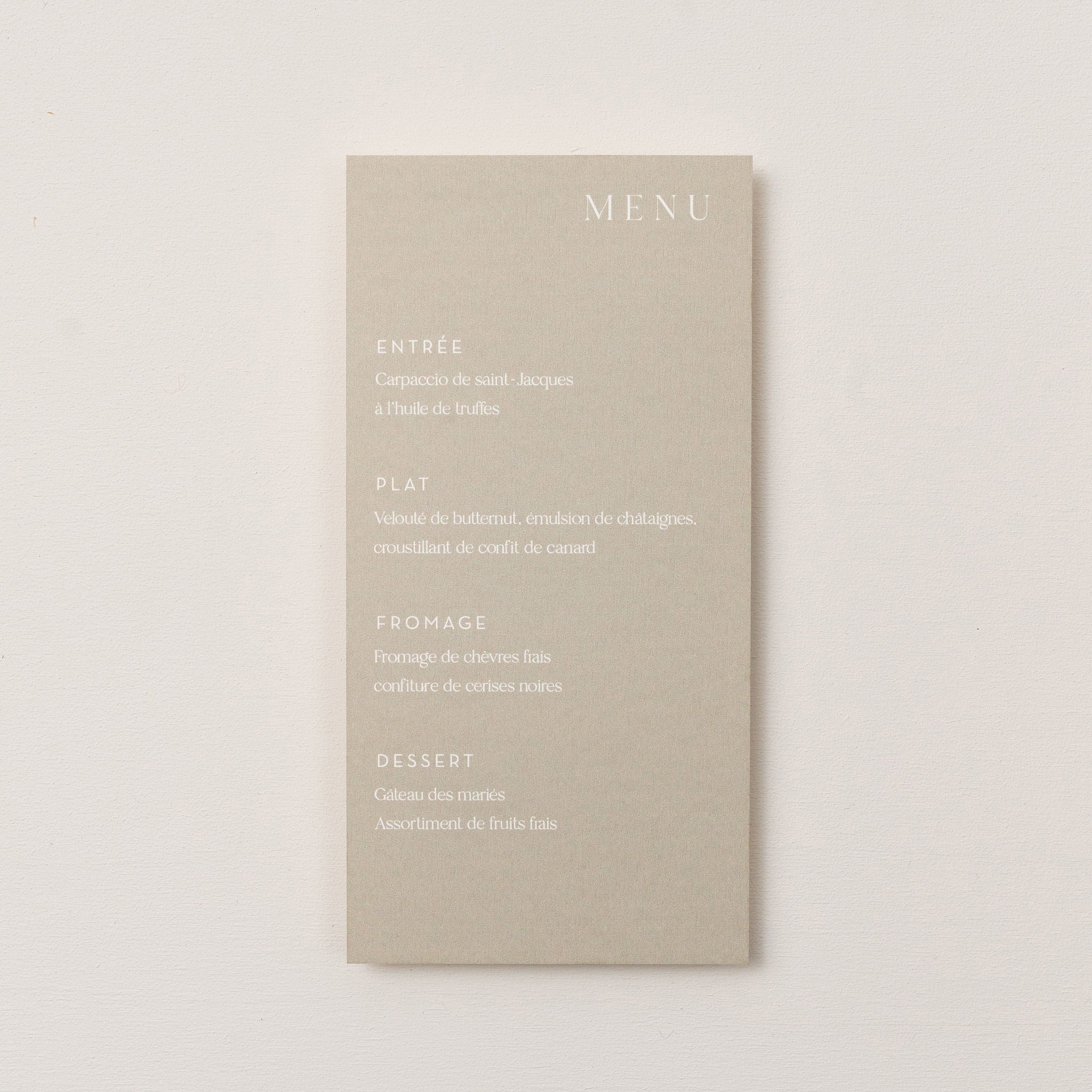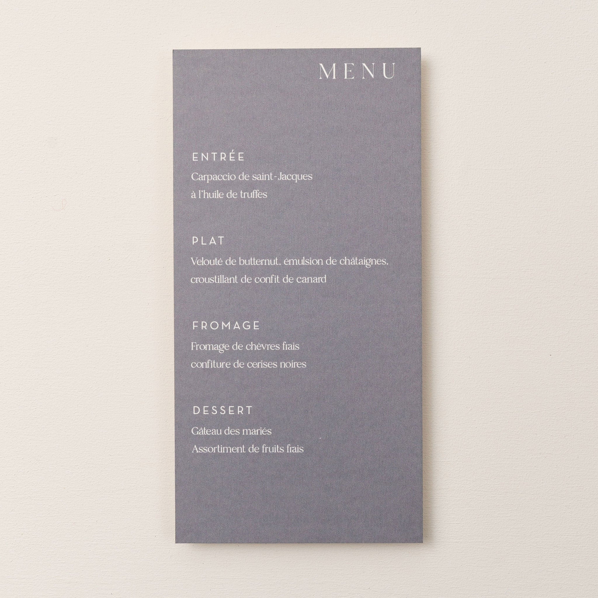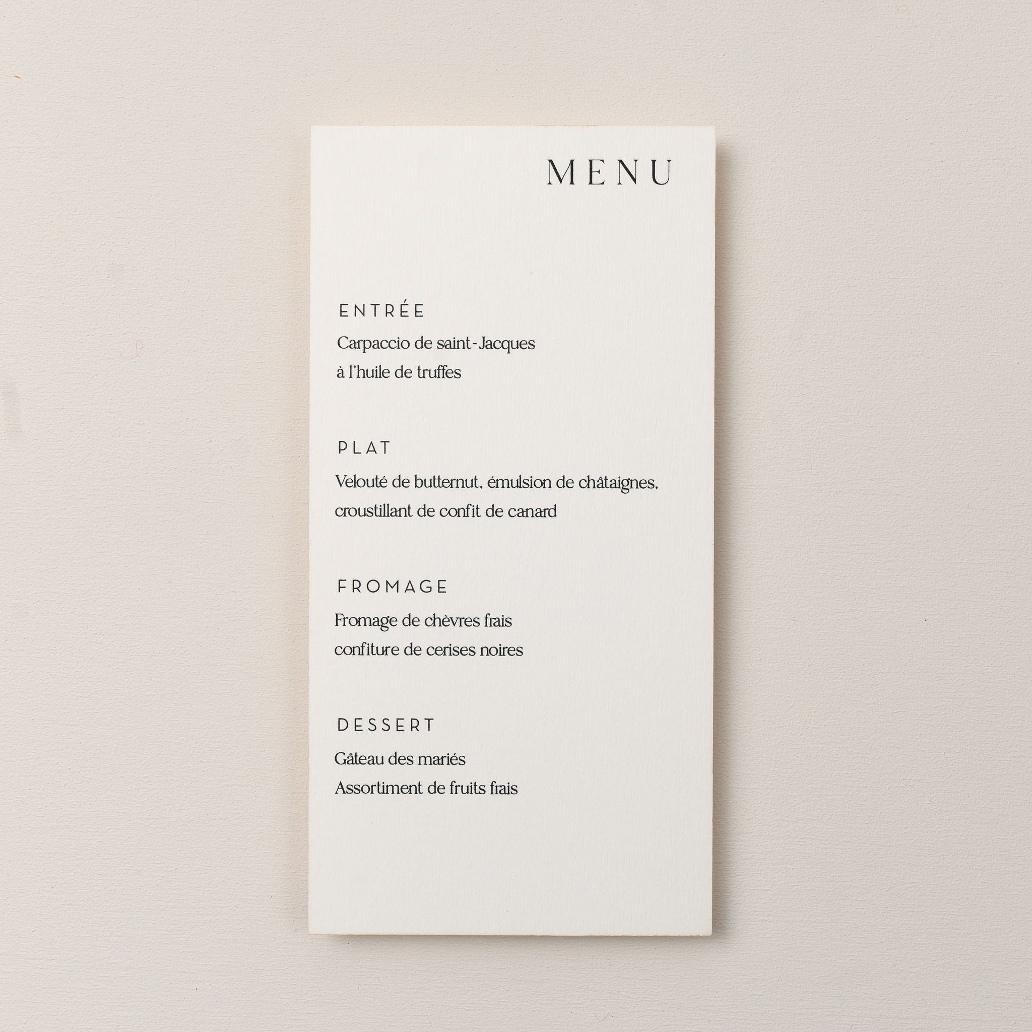 Ces menus font partie de notre collection Lola. Cette collection vous allez l'adorer pour sa touche sobre et moderne.