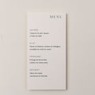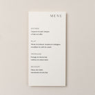 Découvrez les menus en papier texturé 320g/m2. Ils sont imprimés et découpés dans notre atelier et à personnaliser avec votre texte.