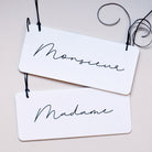 Découvrez les décors de chaises Minimalist. Des dos de chaises en plexi blanc mat imaginés par Les Mignonneries, à personnaliser. Ils sont en plexi, découpés et imprimés dans notre atelier.
