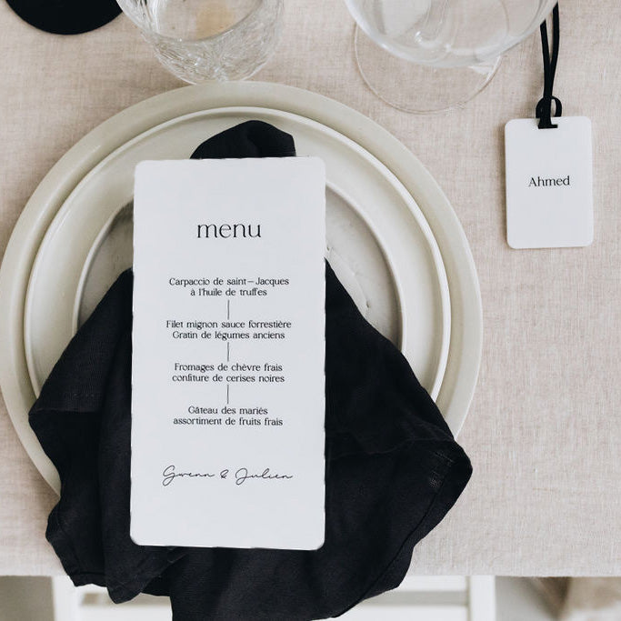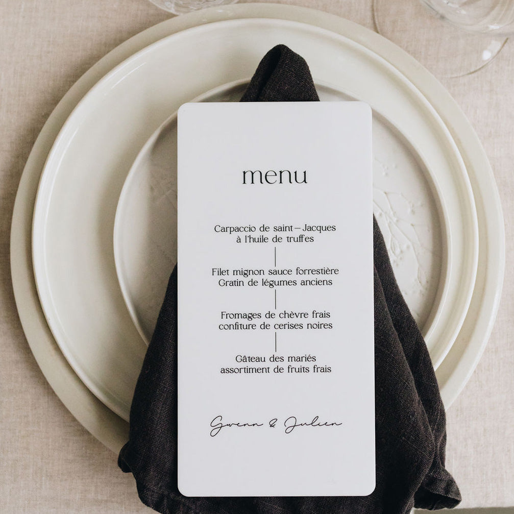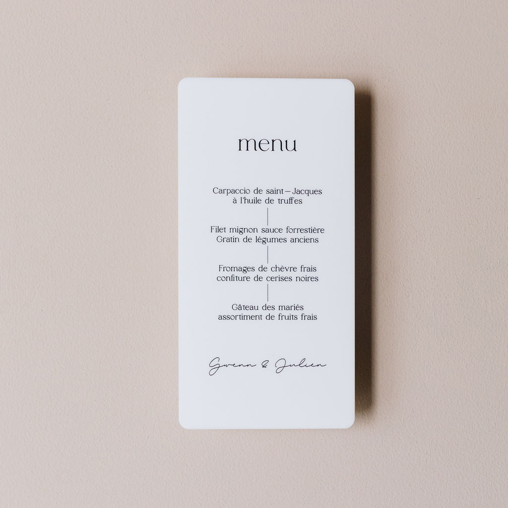 Ces menus font partie de notre collection Minimalist. Une collection sobre et élégante.