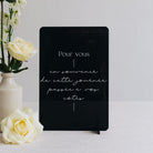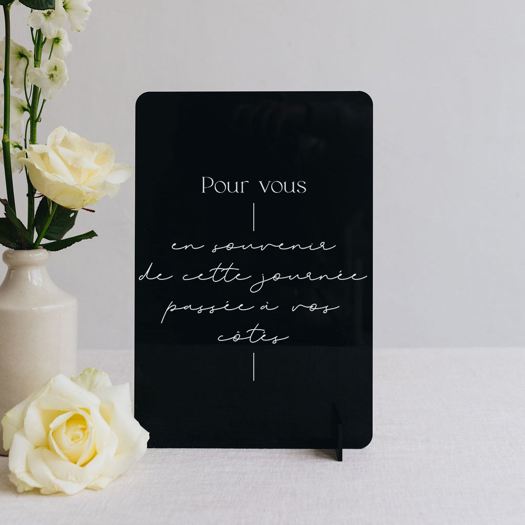Découvrez notre panneau "cadeaux d'invités" en plexi noir brillant Minimalist et texte blanc. Imaginé par Les Mignonneries, il vous permettra de décorer le coin cadeaux de votre mariage.