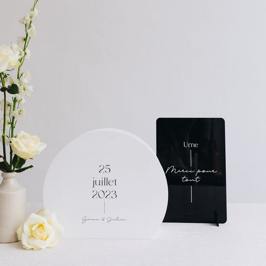 Découvrez notre panneau "Urne" en plexi noir brillant. Imaginé par Les Mignonneries, il est à poser près de votre urne le jour de votre mariage.