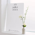 Découvrez notre plan de table en plexi blanc "Minimalist". Imaginé par les Mignonneries, et à personnaliser avec vos propres fiches invités, il est entièrement créé dans notre atelier.