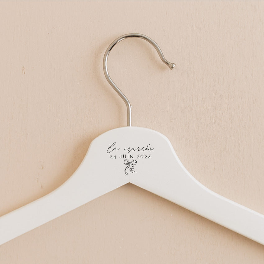 Les cintres personnalisés sont un joli cadeau à s'offrir pour la préparation de votre mariage ou pour un autre événement. Imaginés par les Mignonneries, et à personnaliser avec vos prénoms, votre date de mariage ou les termes de votre choix, ils sont gravés dans notre atelier avec amour.