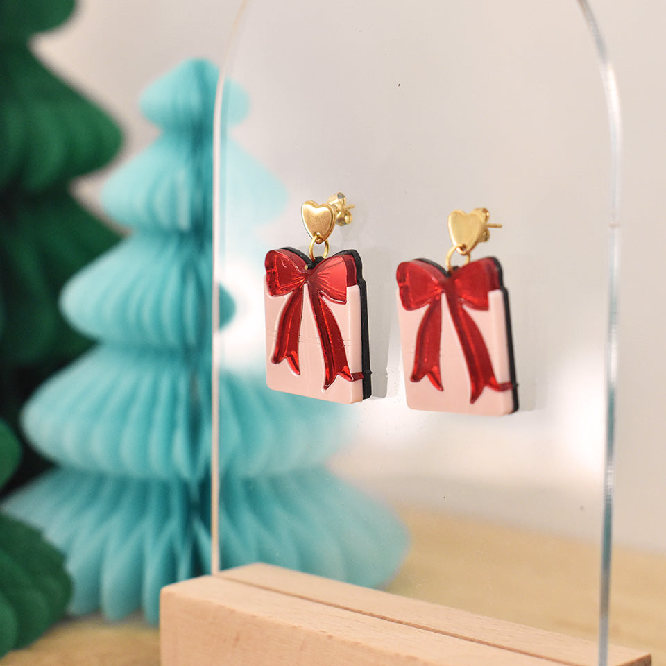 Boucles d’oreilles "Cadeaux" de Noël rose