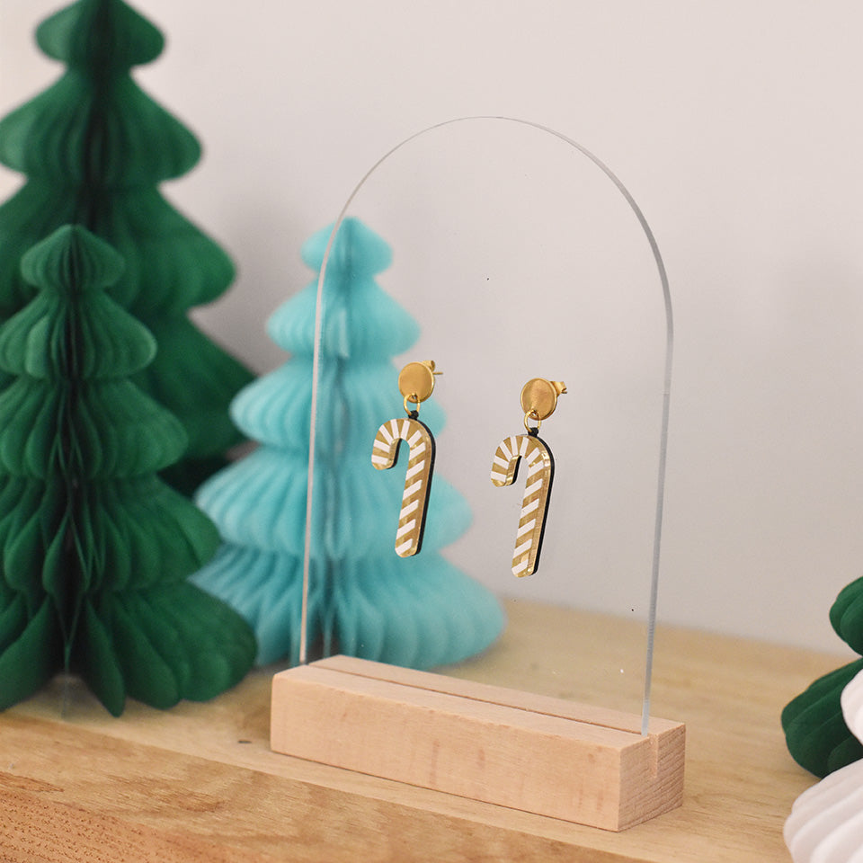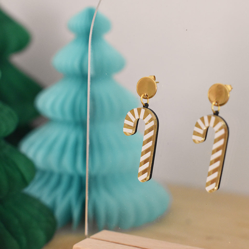 Boucles d’oreilles "Sucres d’orge" de Noël doré