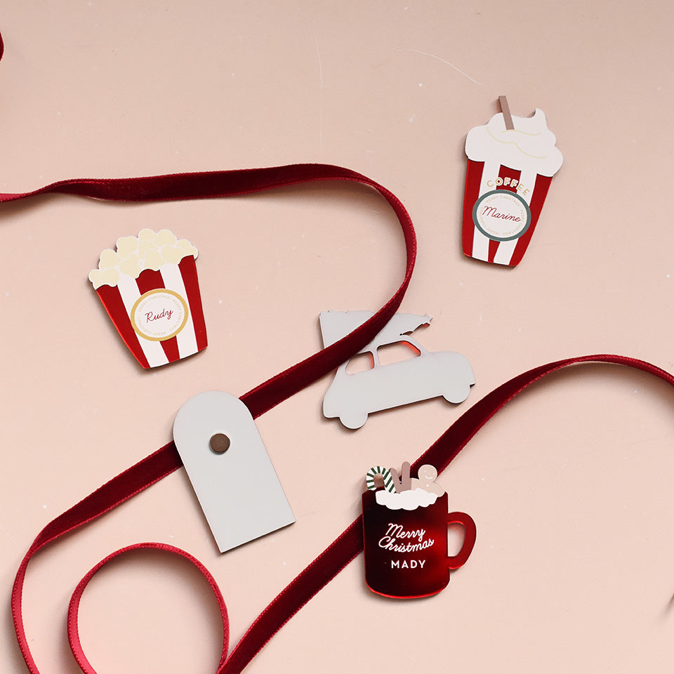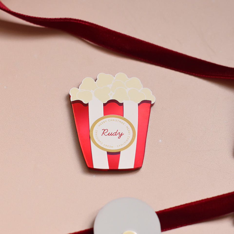 Découvrez les magnet pop-corn de Noël. Imaginés par les Mignonneries, et à personnaliser, ils sont entièrement créés dans notre atelier. Profitez d'une création unique disponible dans deux coloris principaux : rose (baby pink) et miroir rouge.