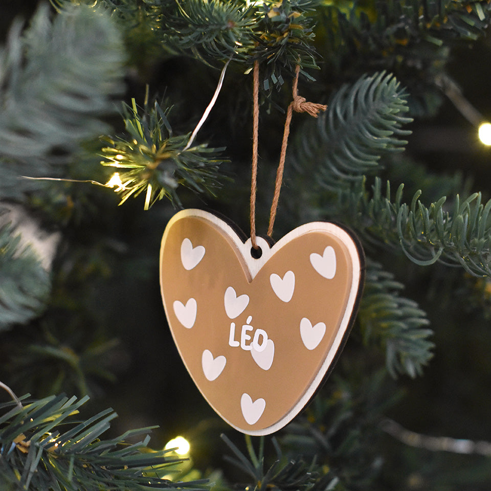 Apportez une touche d'élégance et de modernité à votre sapin de Noël avec cet ornement unique en forme de cœur, conçu en collaboration avec Atelier Wagram. Ce magnifique décor allie le charme chaleureux du bois naturel et la l'élégance du plexi acrylique imprimé, créant un effet visuel à la fois doux et contemporain.