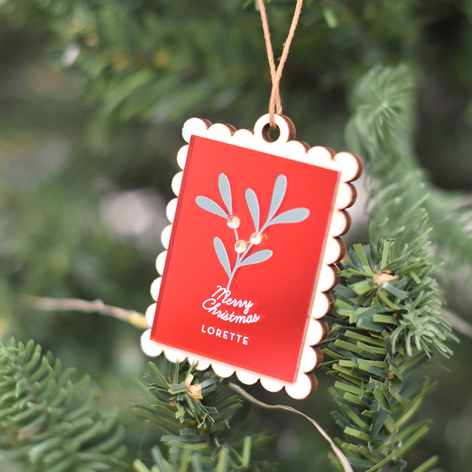 Découvrez notre ornement de sapin "Timbre" de Noël les mignonneries. A personnaliser avec le prénom de votre choix, il est disponible dans deux coloris principaux : rose (baby pink) et miroir rouge.