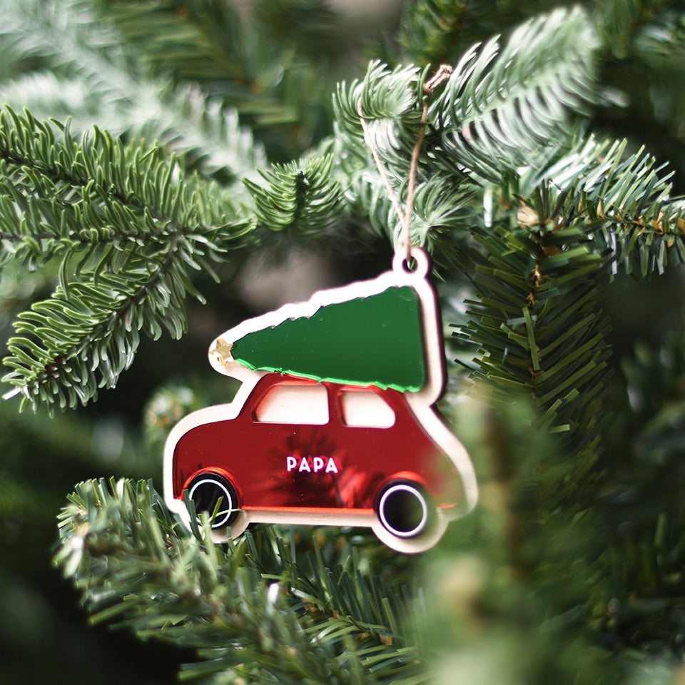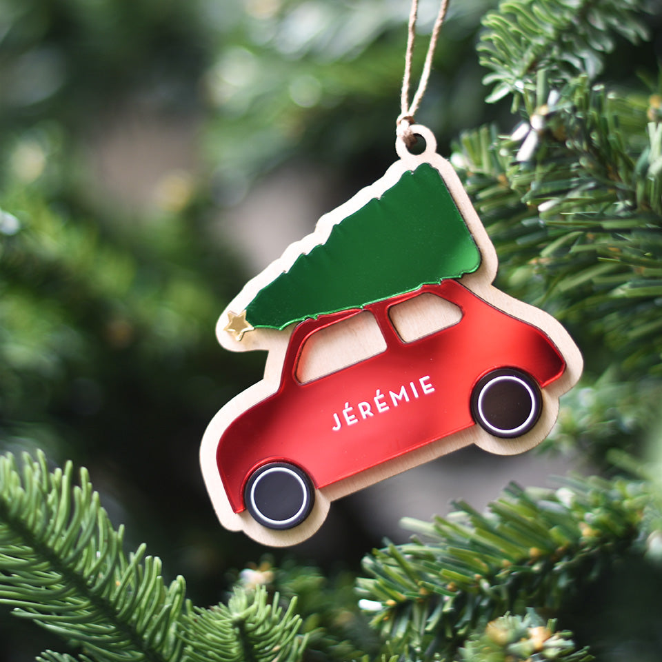Découvrez notre ornement de sapin "Voiture" de Noël rouge les mignonneries. A personnaliser avec le prénom de votre enfant, il est disponible dans deux coloris principaux : rose (baby pink) et miroir rouge.