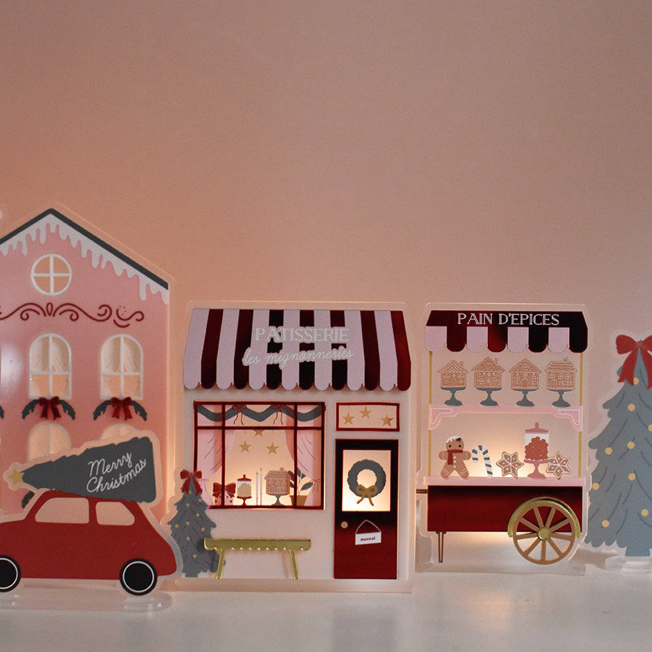 Découvrez nos photophores de Noël, parfaits pour décorer votre maison à l’occasion des fêtes de fin d’année. Nous avons imaginé ces jolis décors en plexi givré blanc et plexi colorés à collectionner pour recréer votre petit village de Noël.