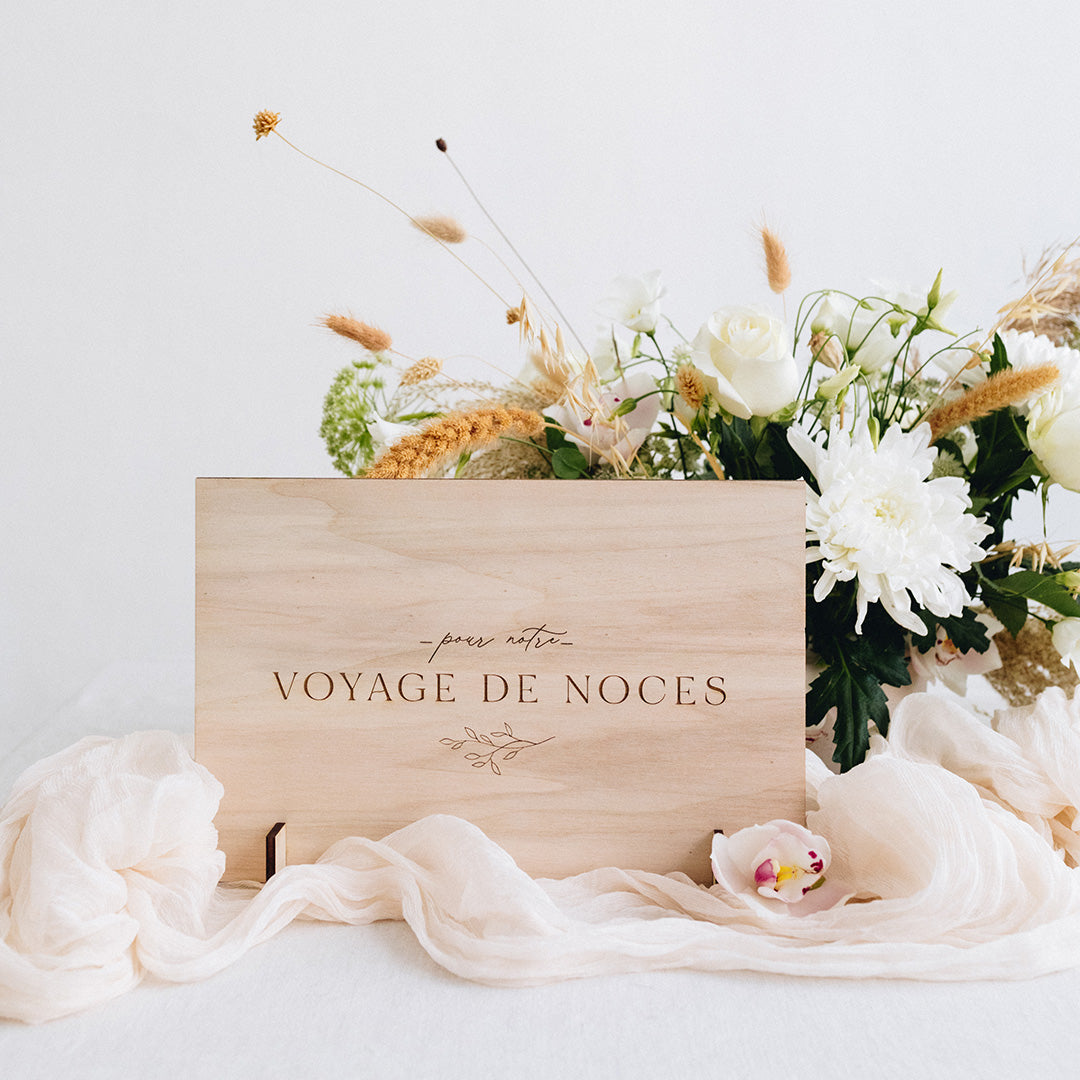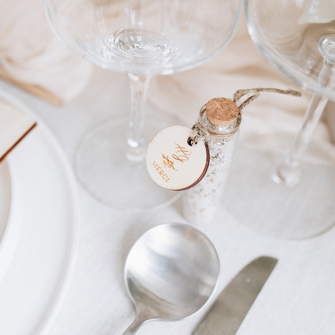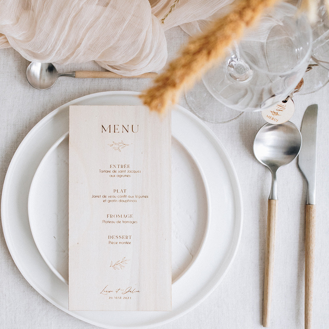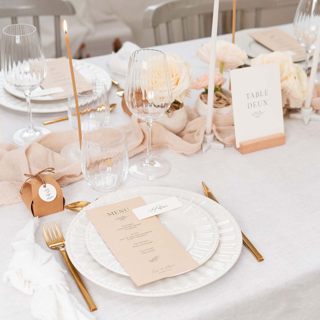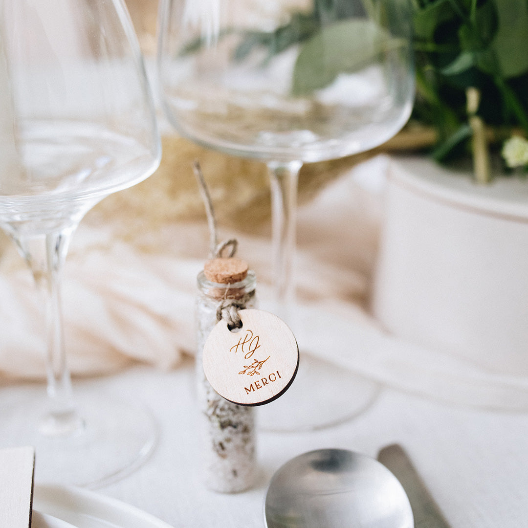 Une collection imaginée par Les Mignonneries. Personnalisez toute la décoration de votre événement avec le thème Nomad. Un style boho chic grâce à un mélange de tissu, de l’or et du bois gravé.
