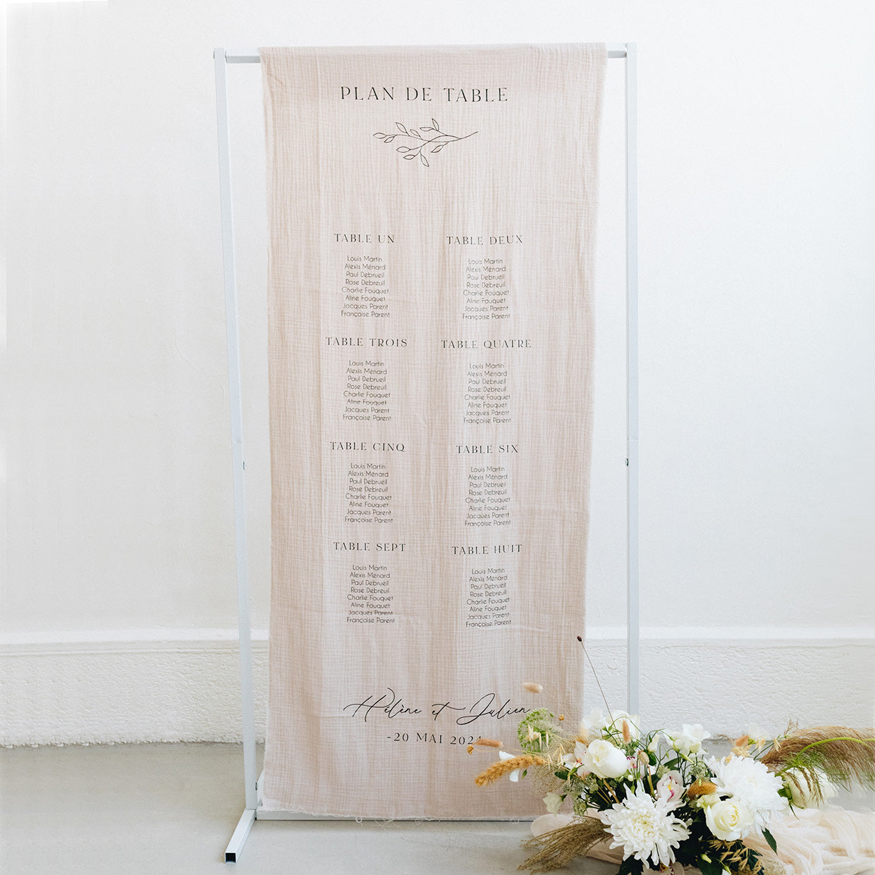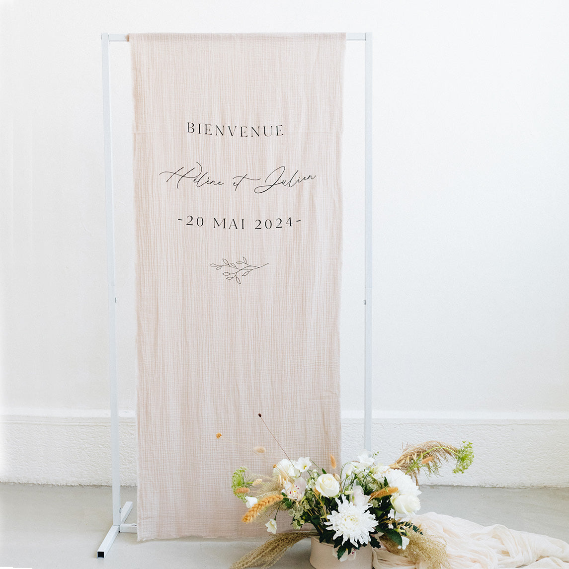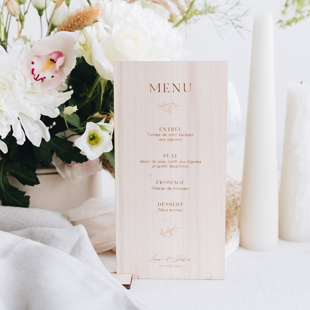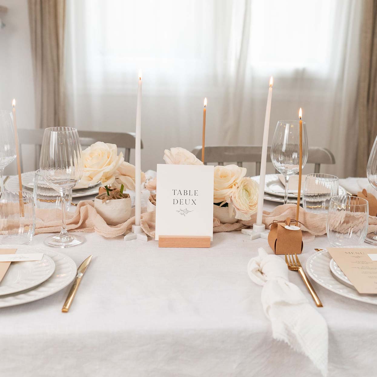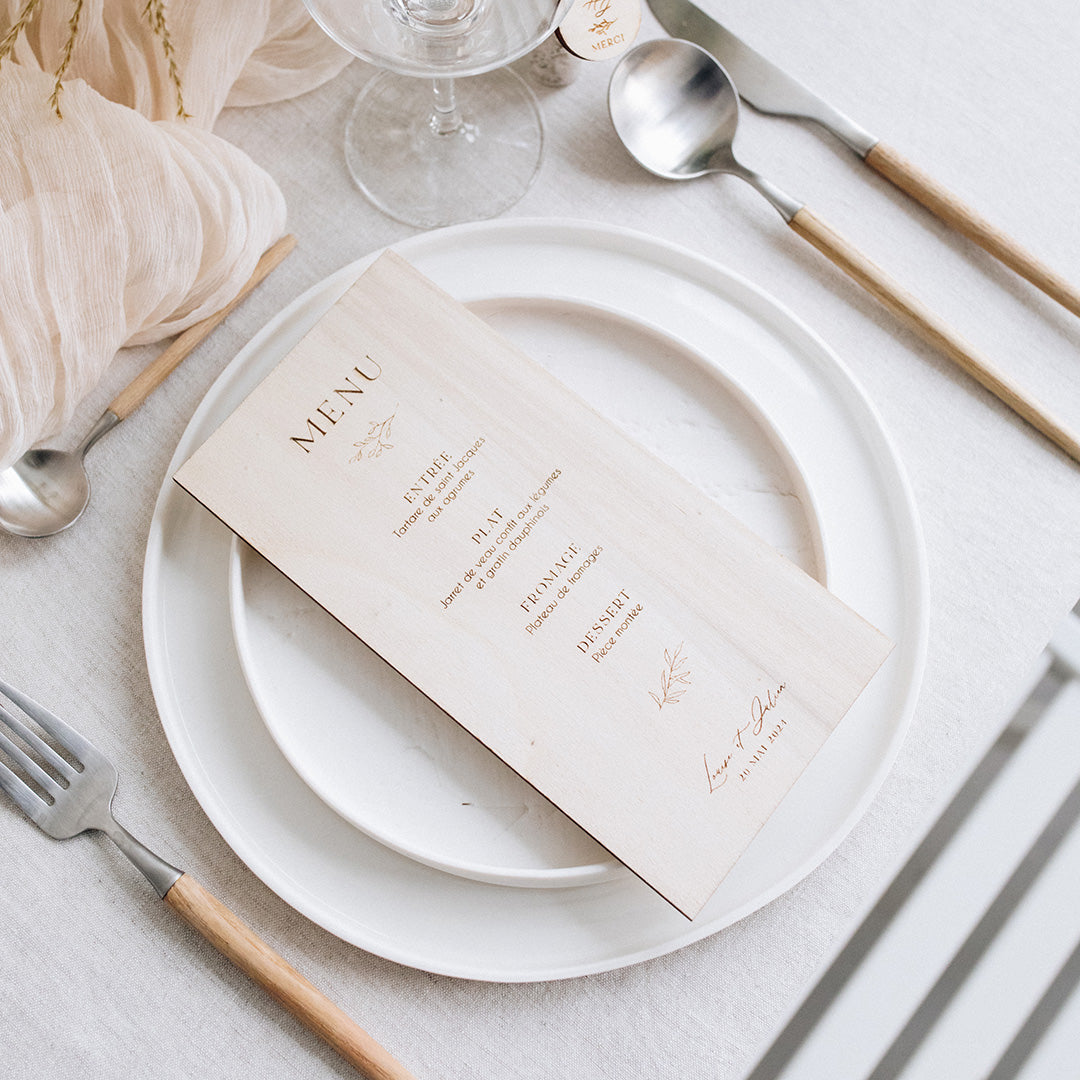 Une collection imaginée par Les Mignonneries. Personnalisez toute la décoration de votre événement avec le thème Nomad. Un style boho chic grâce à un mélange de tissu, de l’or et du bois gravé.
