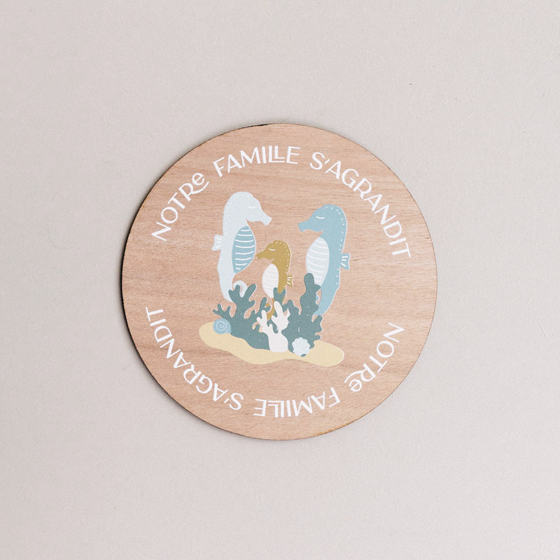 Découvrez ce panneau Océan. Avec une illustration hippocampe imaginé par Les Mignonneries, il est à personnaliser avec le texte de votre choix. En bois, il est coupé et imprimé dans notre atelier.