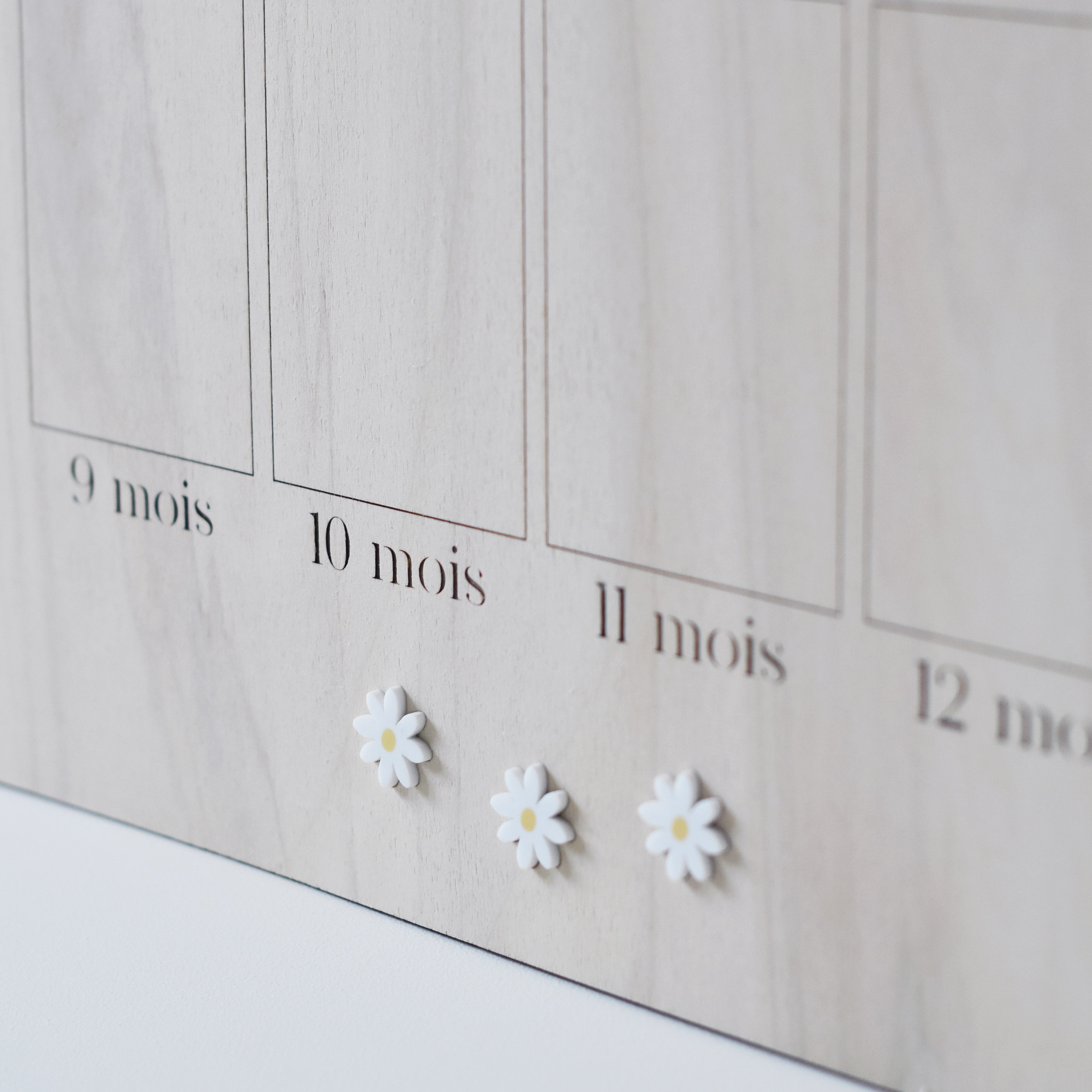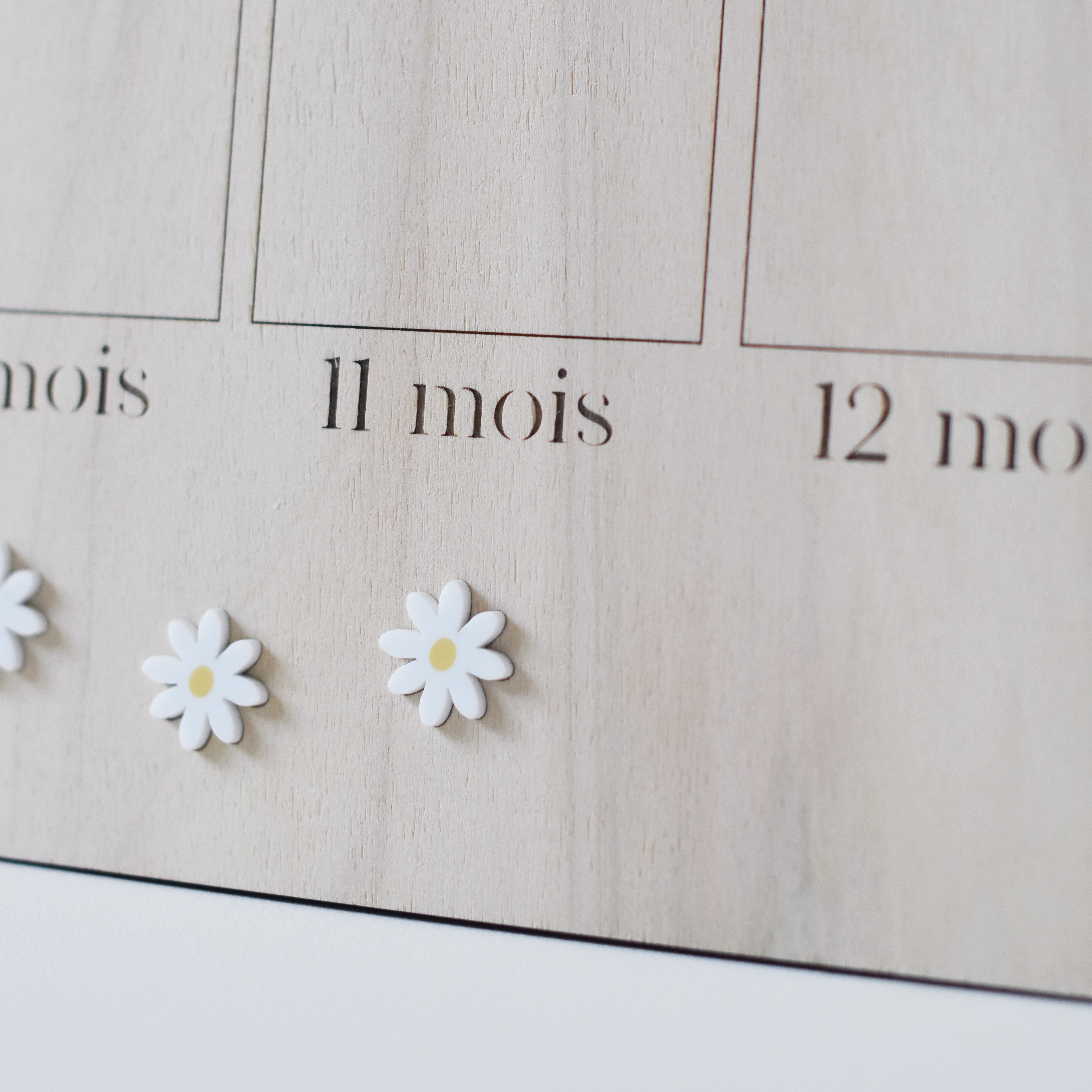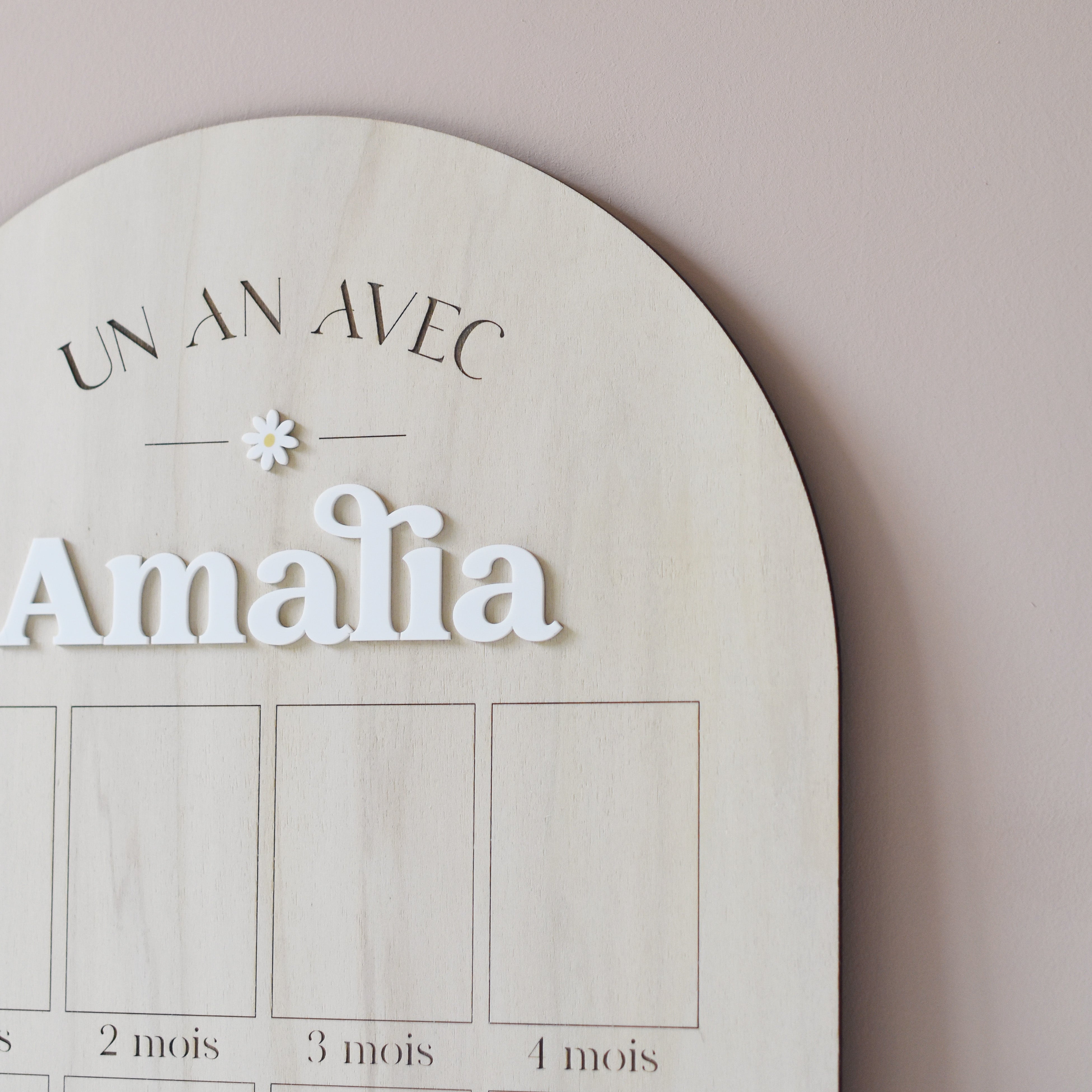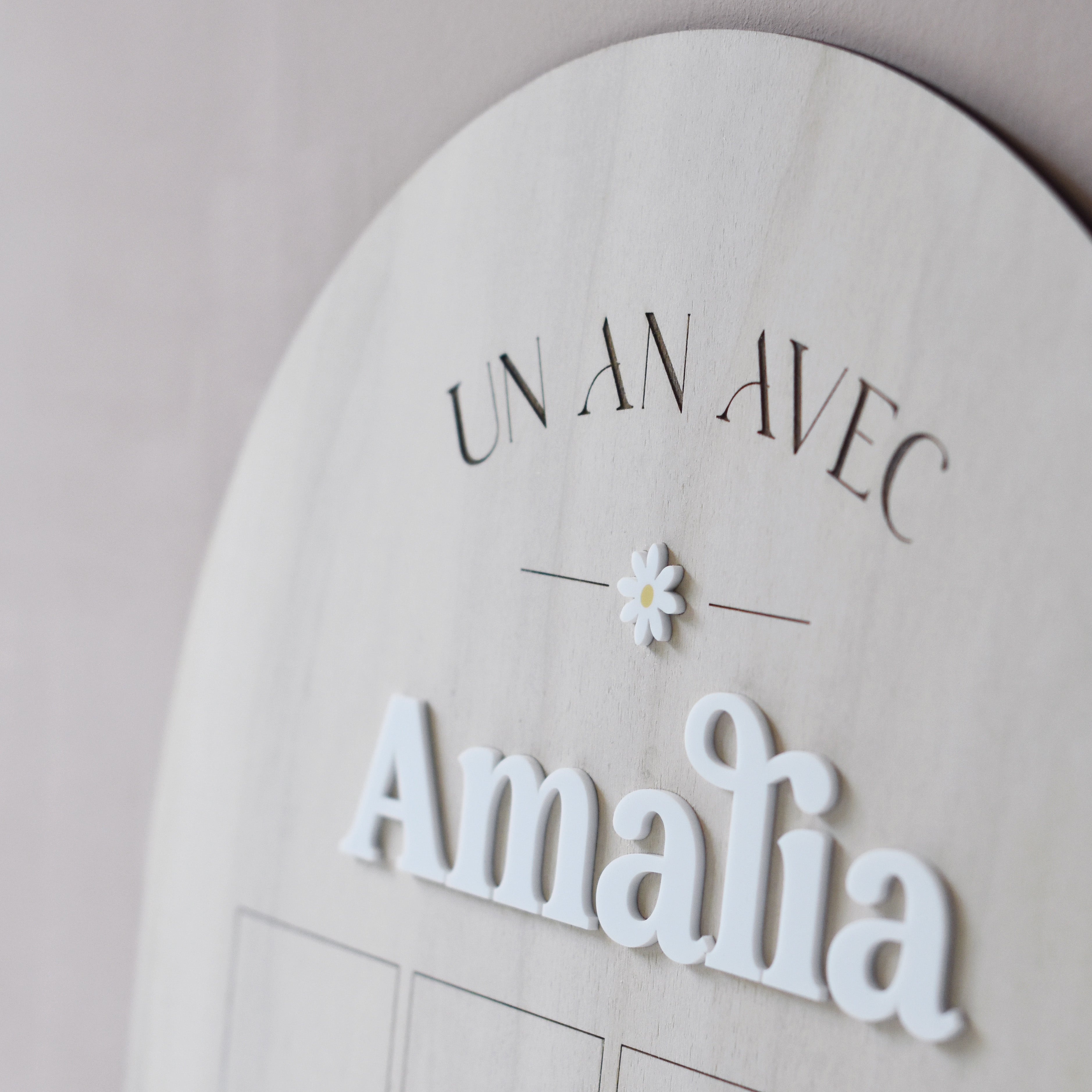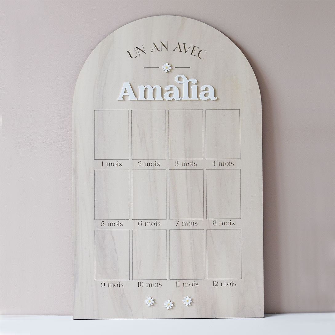 Découvrez notre panneau 1 an avec en bois gravé et plexi Fleurs. Imaginé par les Mignonneries, et à personnaliser avec le prénom de votre choix, il est entièrement créé dans notre atelier.