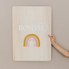 Découvrez ce panneau Arc-en-ciel. Avec une illustration imaginée par Les Mignonneries, il est à personnaliser avec le prénom de votre enfant. En bois, il est coupé et imprimé dans notre atelier.