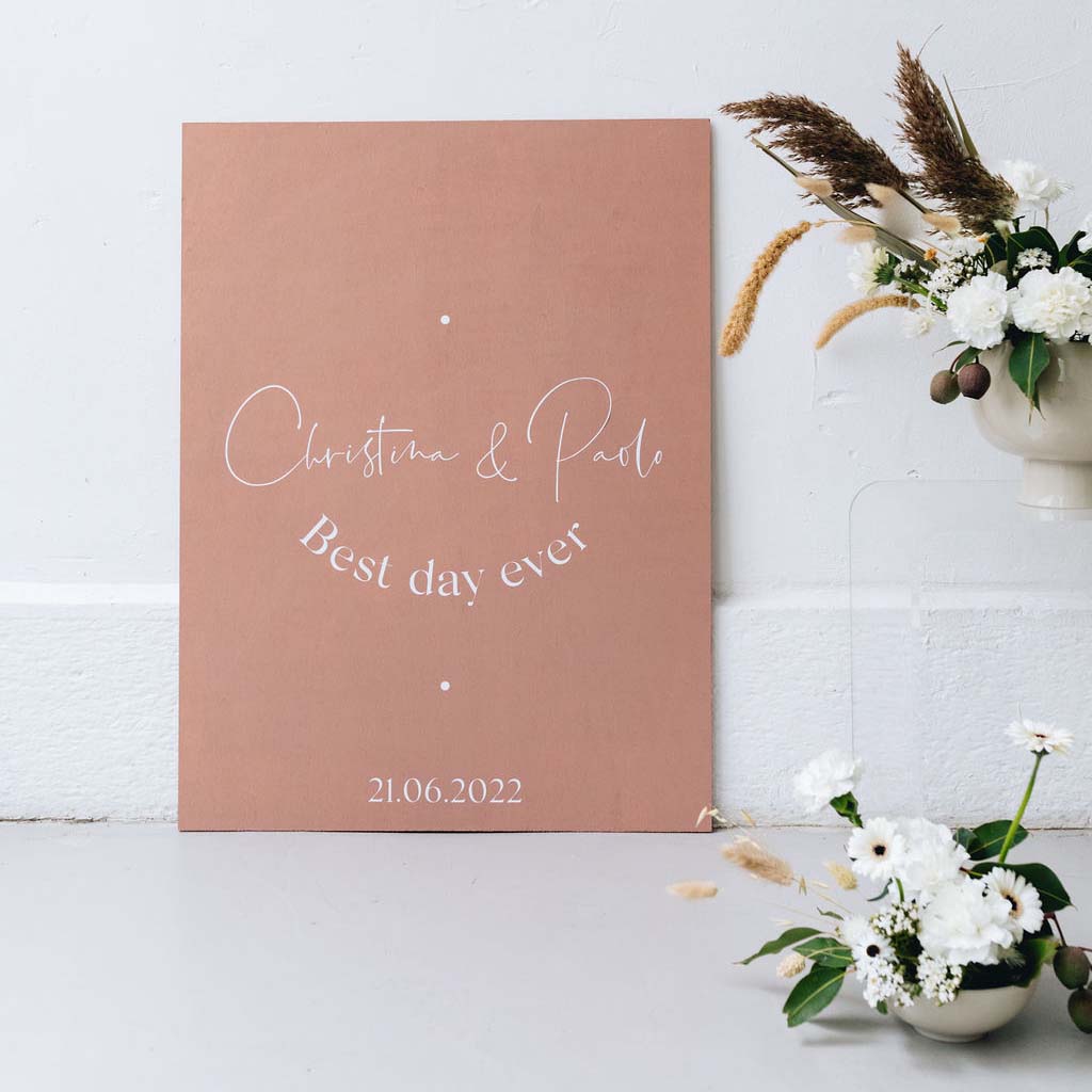 Découvrez notre panneau d'accueil Best Day en bois peint couleur Terracotta. Imaginé par les Mignonneries, et à personnaliser avec vos prénoms et la date de votre mariage, il est entièrement créé dans notre atelier.