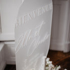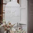 Découvrez un joli panneau d'accueil en plexi givré blanc. Imaginé par les Mignonneries pour un shooting de Côme event, il est à personnaliser avec vos prénoms et la date de votre mariage, il est entièrement créé dans notre atelier.